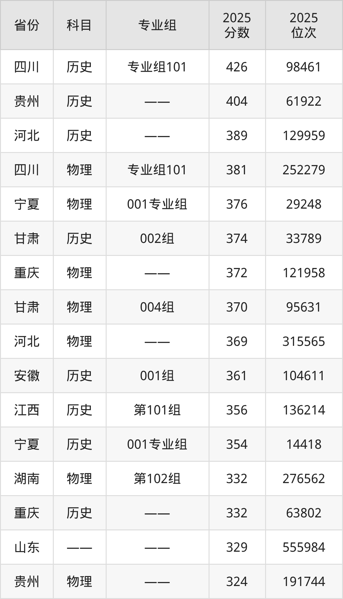 2025年新疆生产建设兵团兴新职业技术学院全国录取分数线233分到426分,录取最高在四川(历史类专业组101)、录取最低在新疆(理科)。