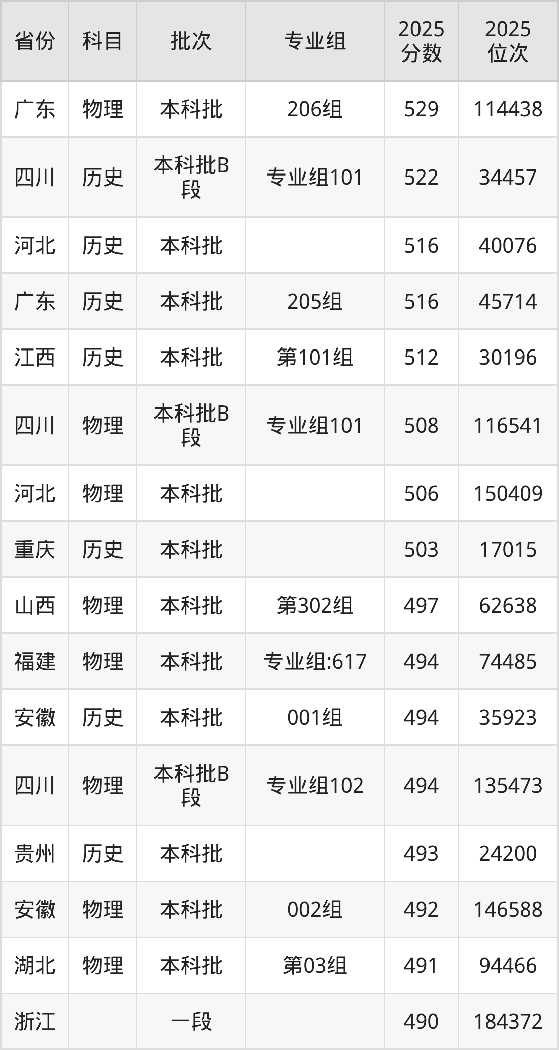 5、公共事业管理:502分、位次181791名;