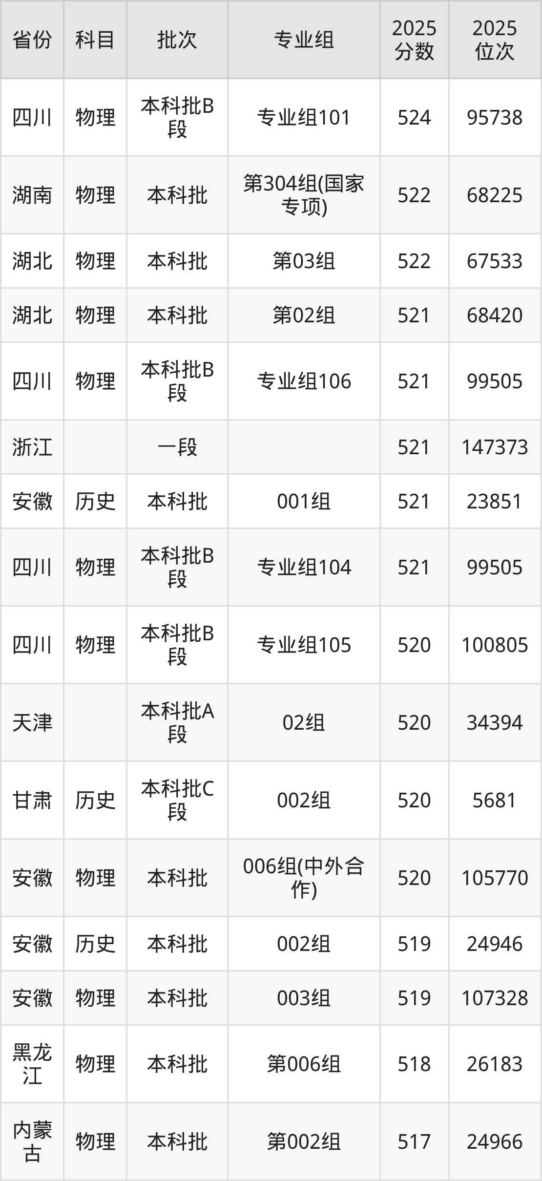 大连海洋大学录取分数线普遍在520分及以上,最高分和最低分专业分数线相差72分、位次相差153518名。可见,对于有专业要求的同学而言,并不能简单参考学校的最低分,否则很容易被录取到不喜欢的专业。