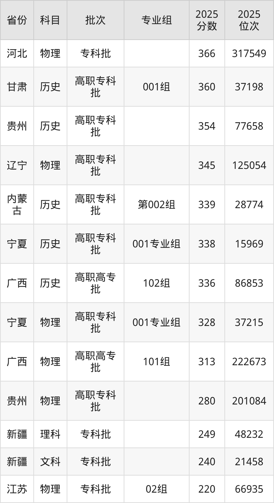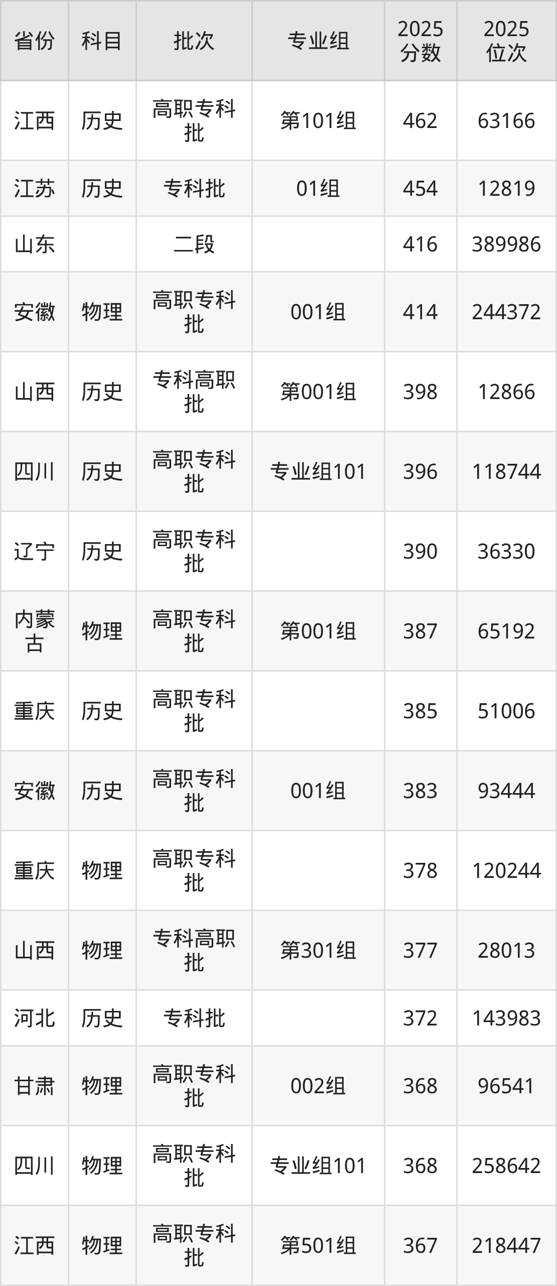 下面是2025年西安职业技术学院在全国各省录取最低分数据及位次,各位考生也可作为一个参考。