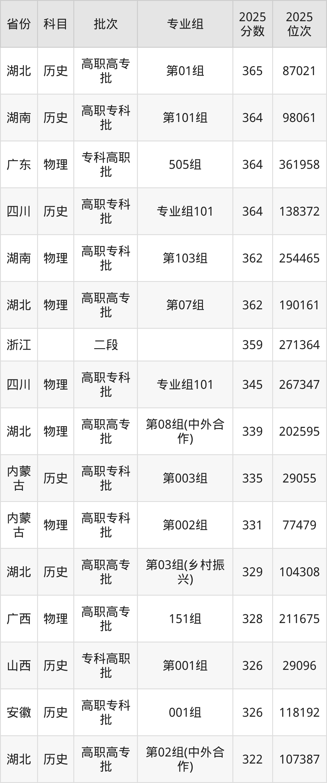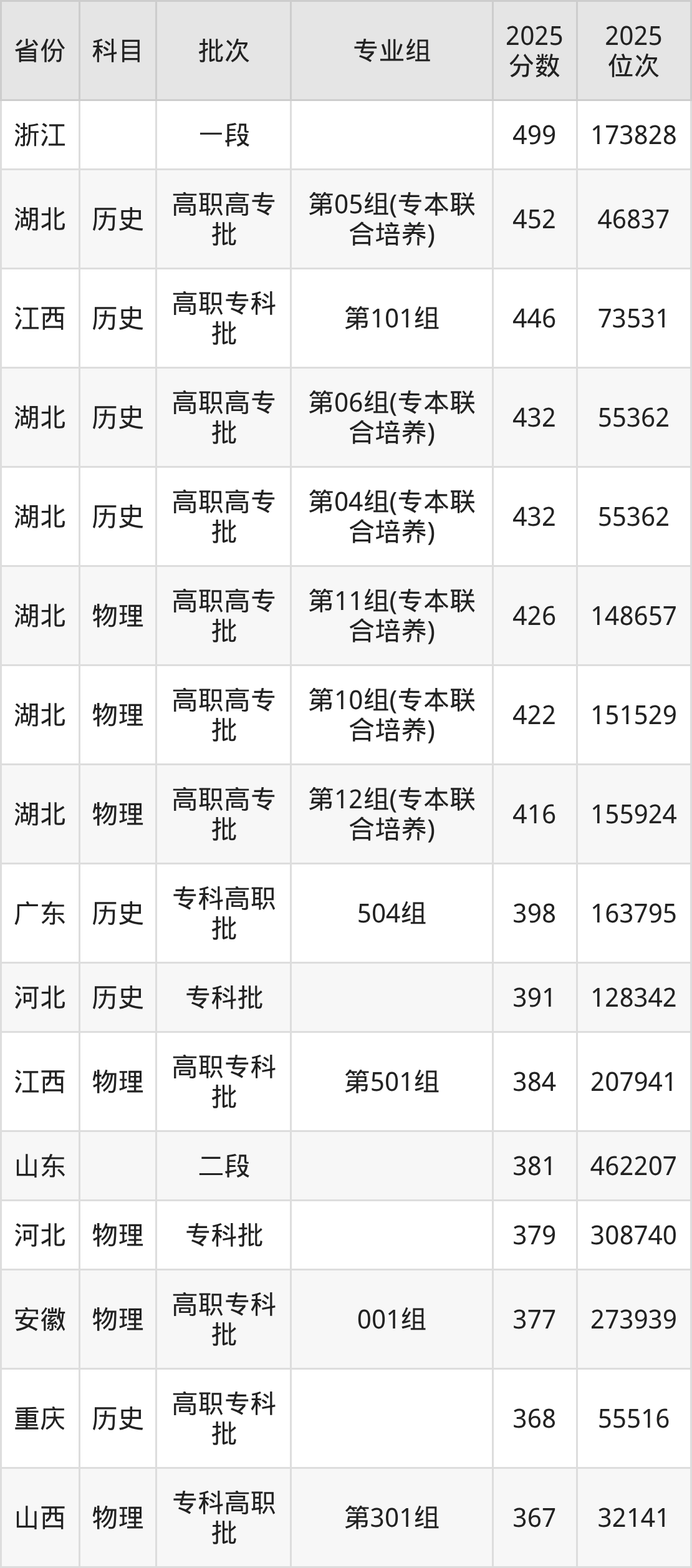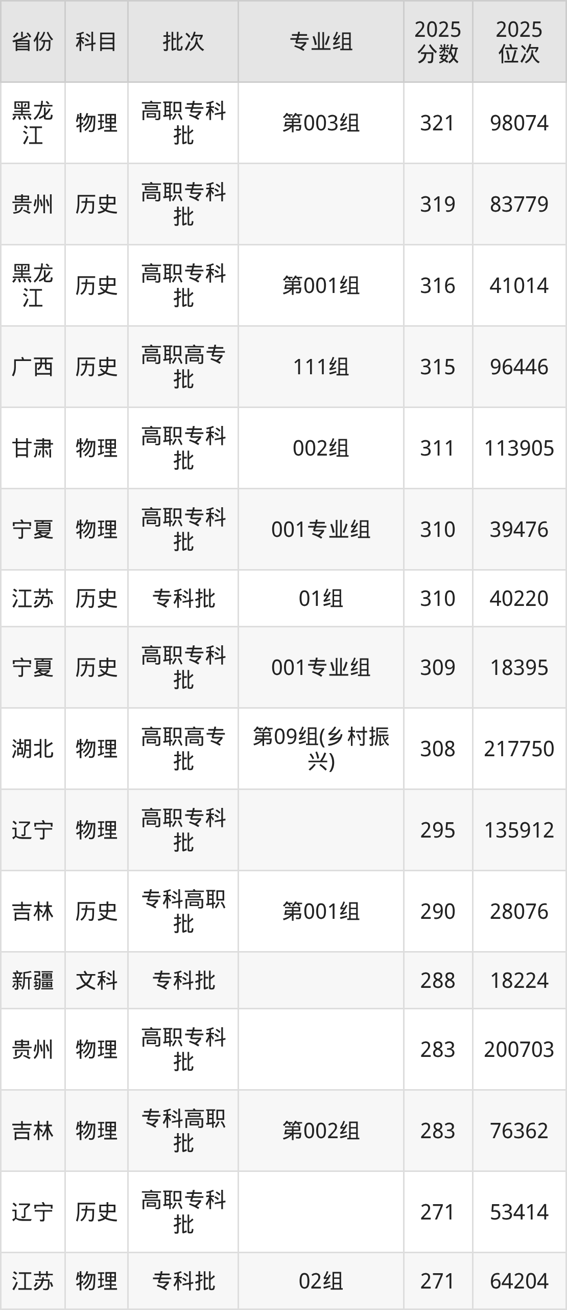 下面是2025年咸宁职业技术学院在全国各省录取最低分数据及位次,各位考生也可作为一个参考。