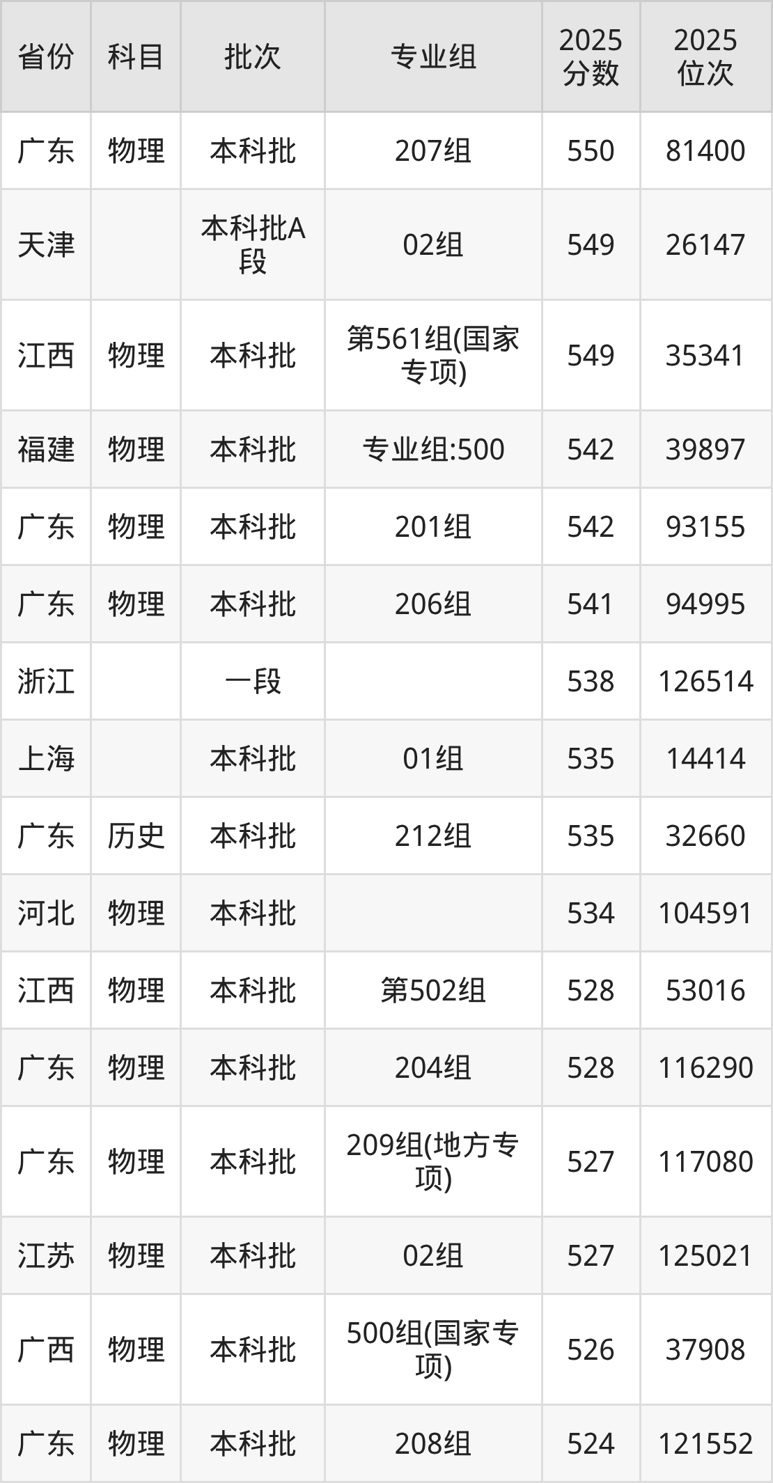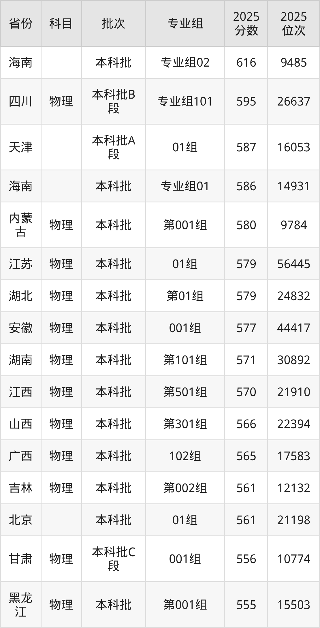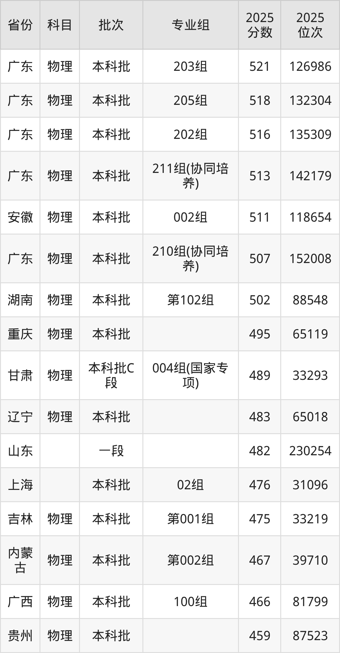 下面是2025年广东医科大学在全国各省录取最低分数据及位次,各位考生也可作为一个参考。