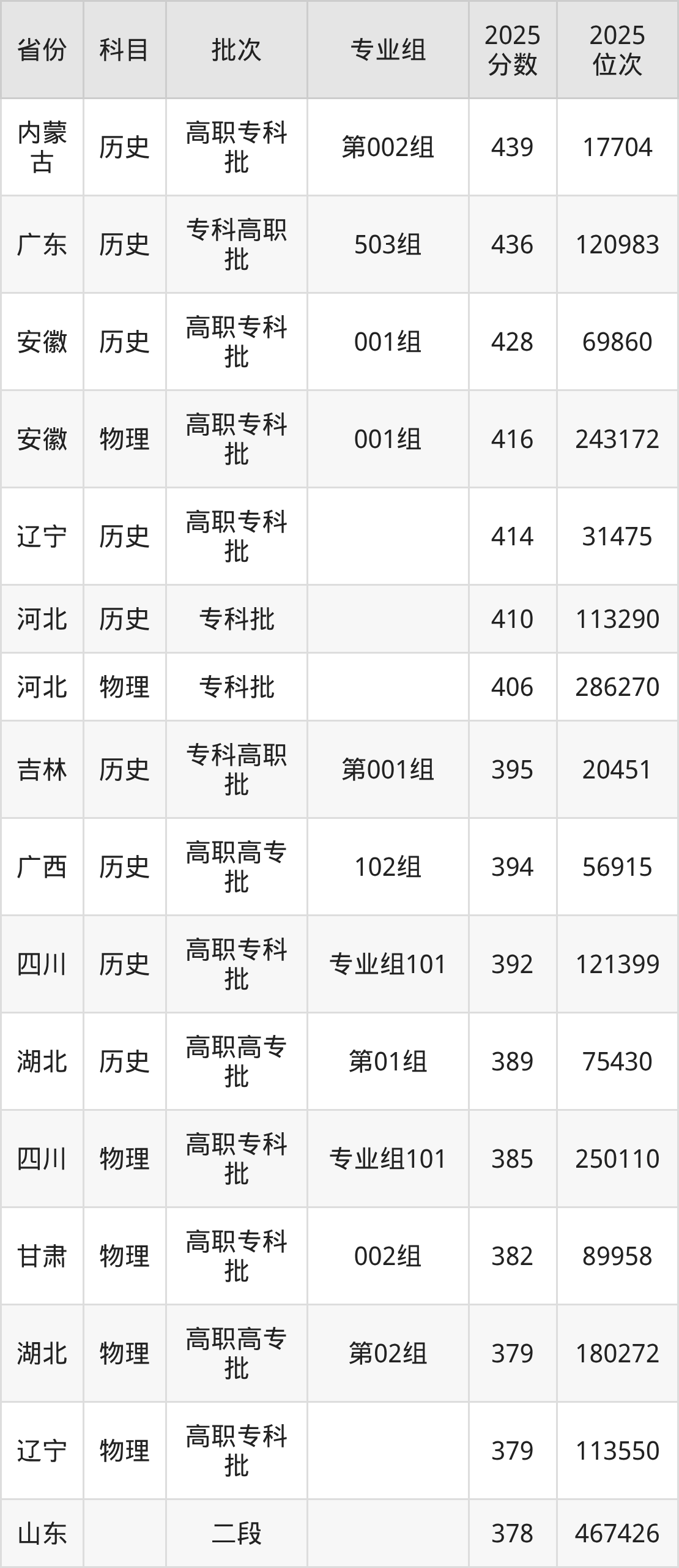 下面是2025年河北化工医药职业技术学院在全国各省录取最低分数据及位次,各位考生也可作为一个参考。