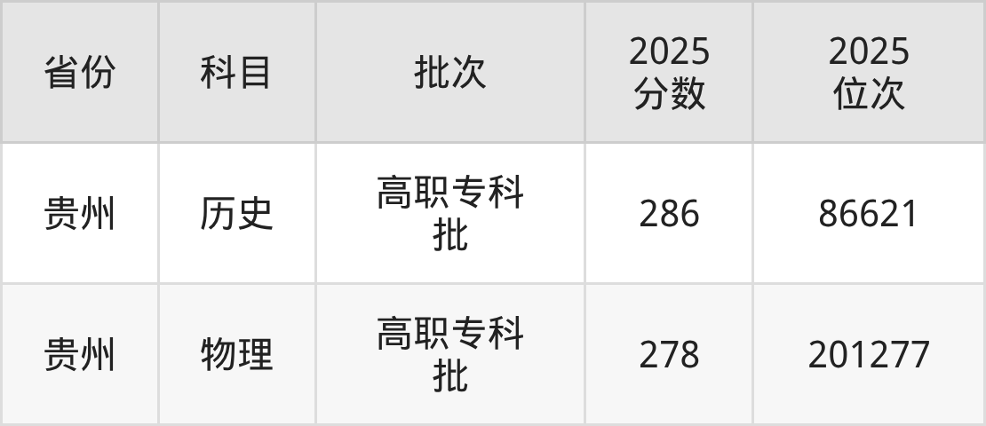 三、贵州电子科技职业学院2025年录取分数线