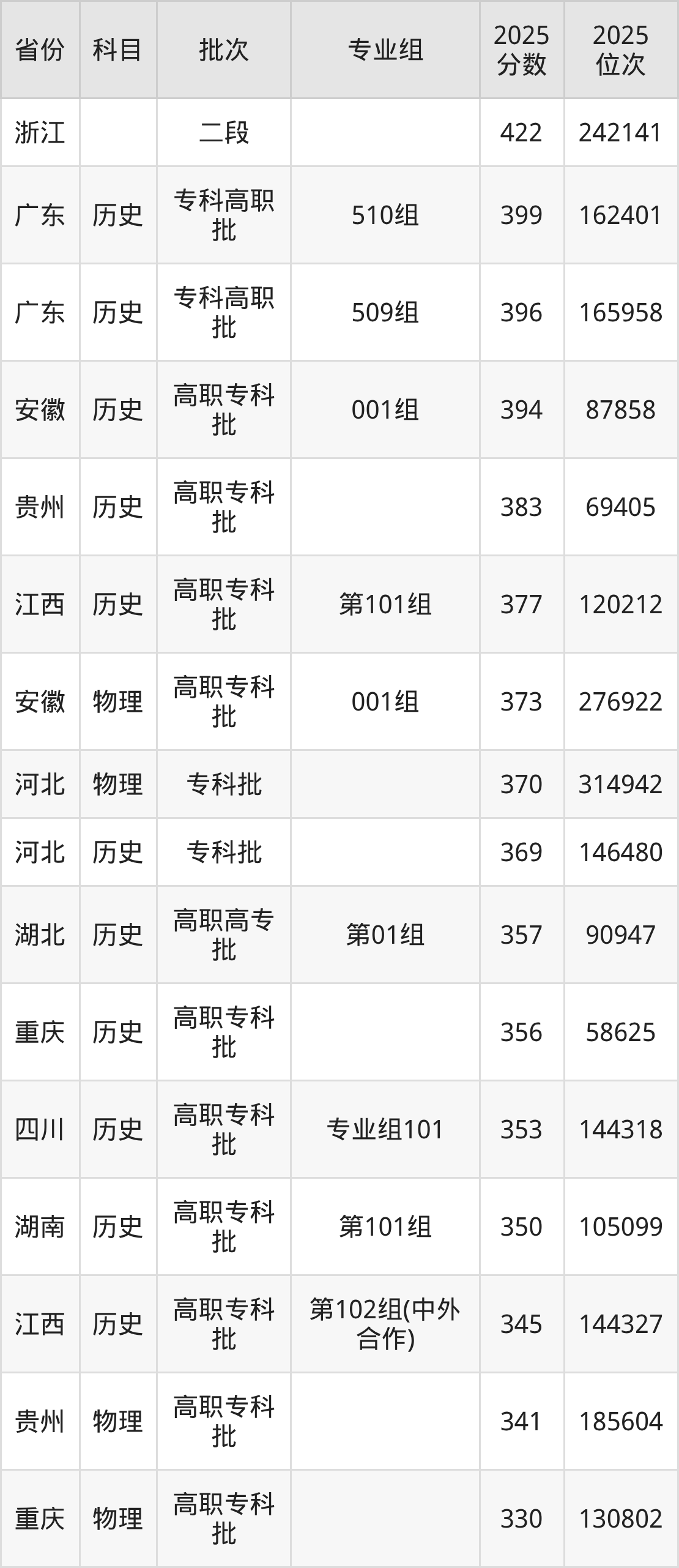 下面是2025年上饶幼儿师范高等专科学校在全国各省录取最低分数据及位次,各位考生也可作为一个参考。