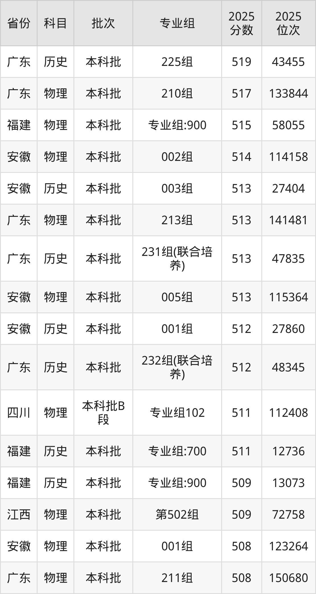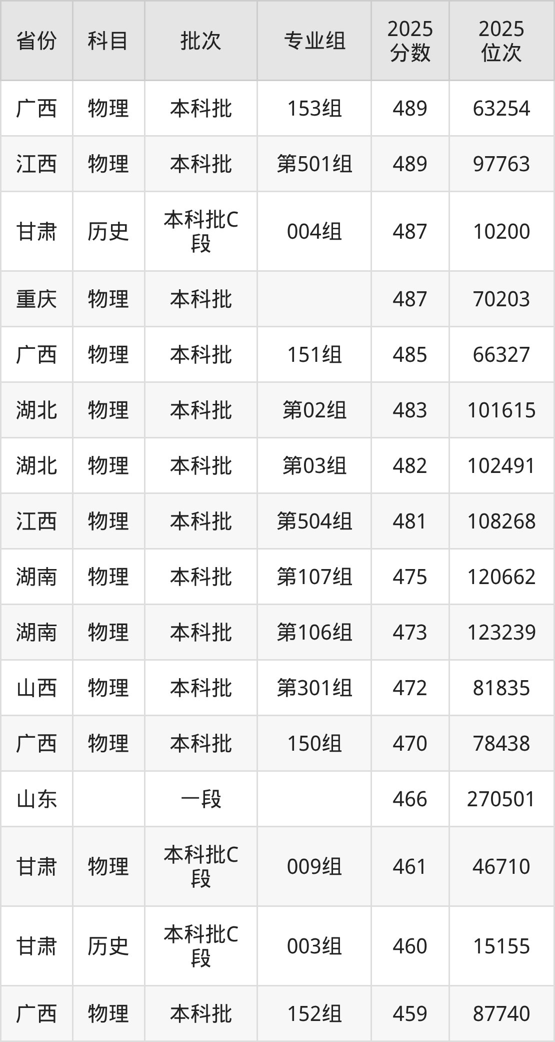 下面是2025年嘉应学院在全国各省录取最低分数据及位次,各位考生也可作为一个参考。