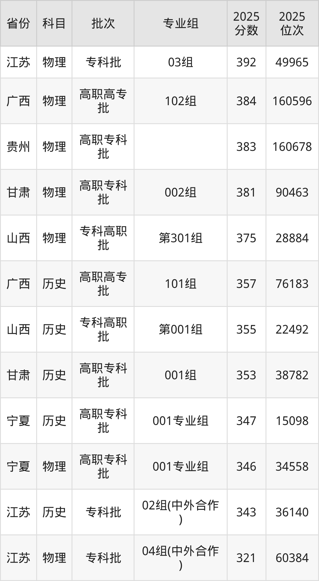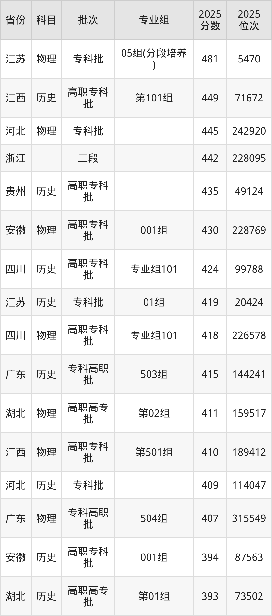 下面是2025年常州工业职业技术学院在全国各省录取最低分数据及位次,各位考生也可作为一个参考。