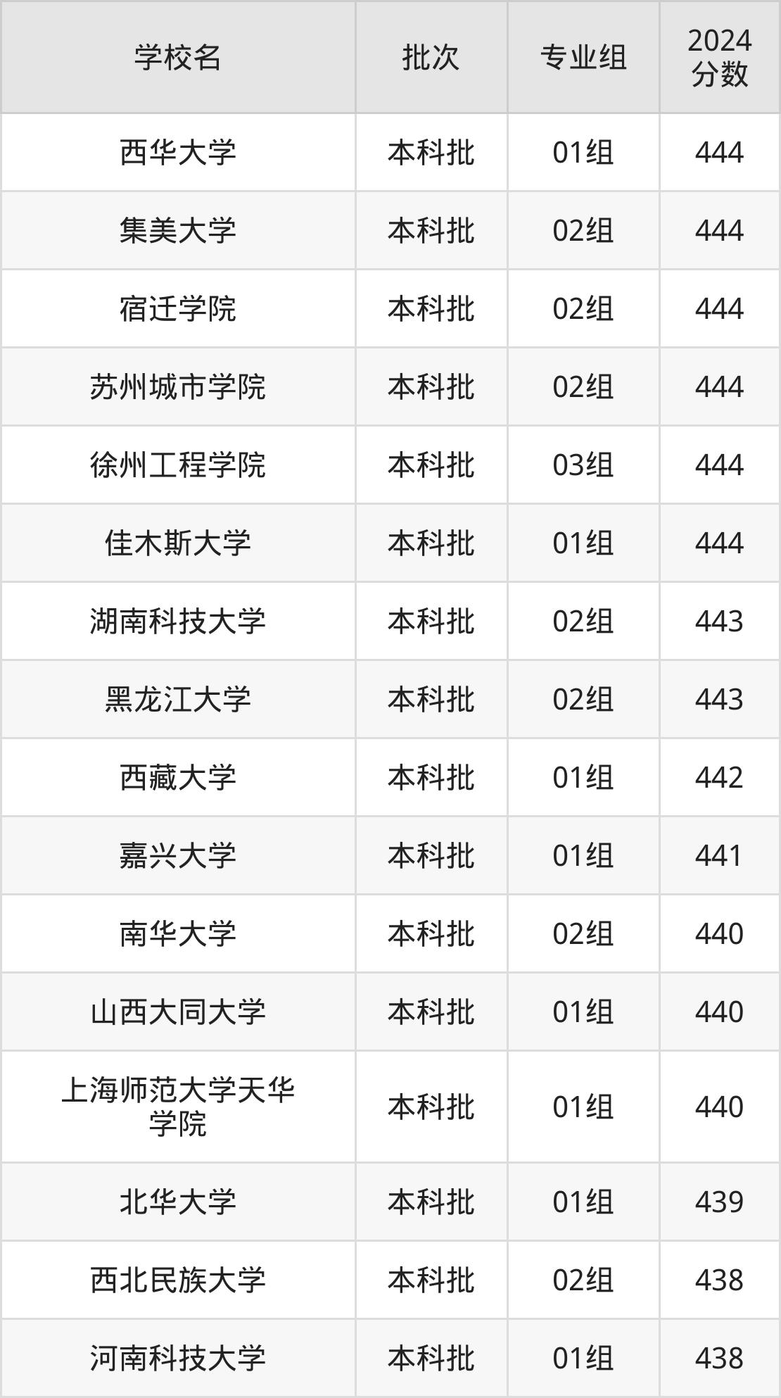 根据2024年高考招录数据,录取分数线刚好为440分的综合类大学有西藏大学、南华大学、山西大同大学。下面是这些学校的相关介绍: