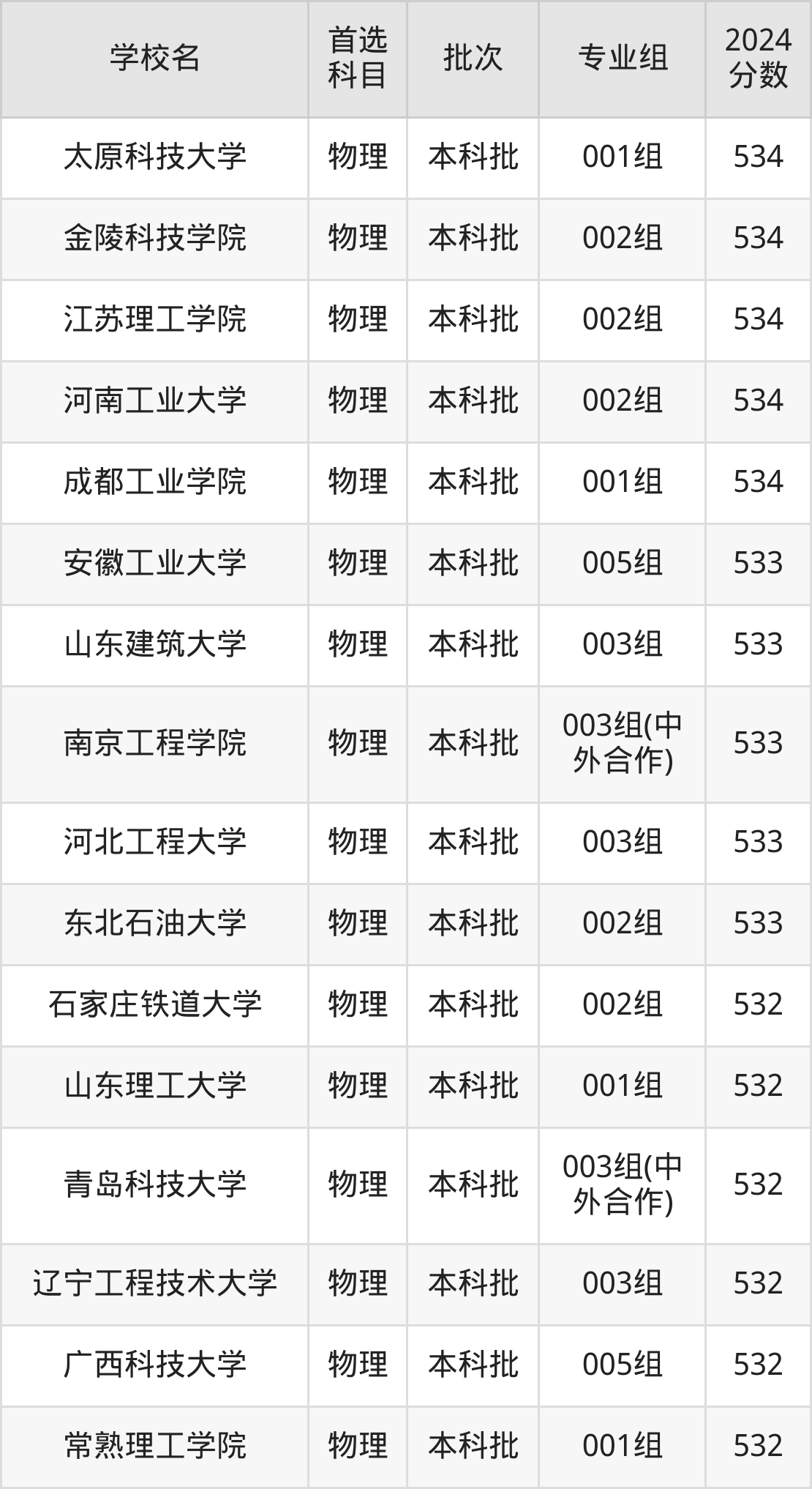 为给各位考生更加详细的参考,下文整理了2024年录取分数线在525分到535分之间的理工类大学名单汇总。