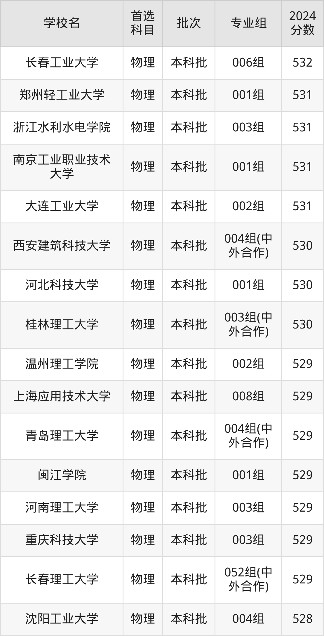 根据2024年高考招录数据,录取分数线刚好为530分的理工类大学有安徽工程大学、浙江科技大学、东北电力大学。下面是这些学校的相关介绍: