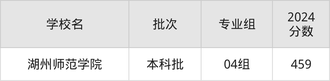 考生能上的有1所,全部在本科批次录取。具体有:湖州师范学院04组(459分)。