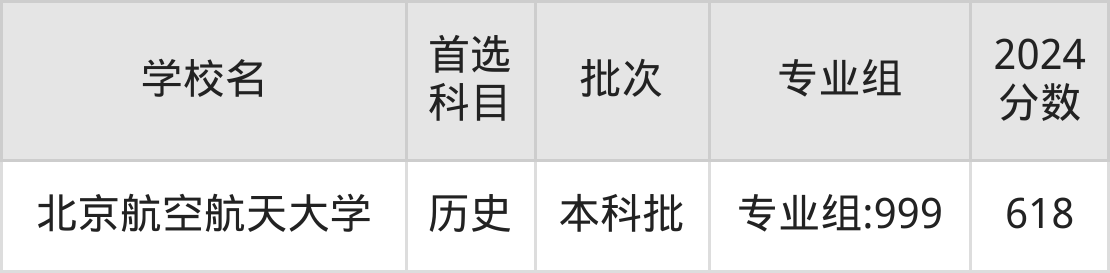 首选历史科目考生能上的有1所,全部在本科批次录取。具体有:北京航空航天大学专业组:999(618分)。