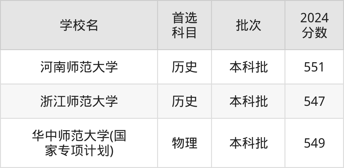 2、华中师范大学(国家专项计划)(2024年物理类549分)