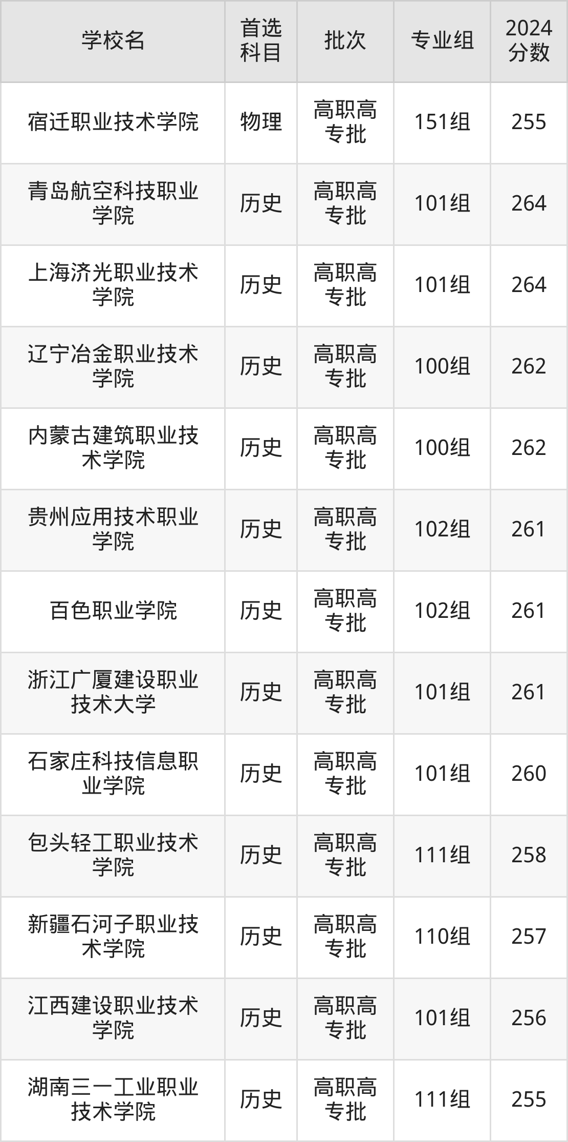 1、石家庄科技信息职业学院(2024年历史类101组260分)