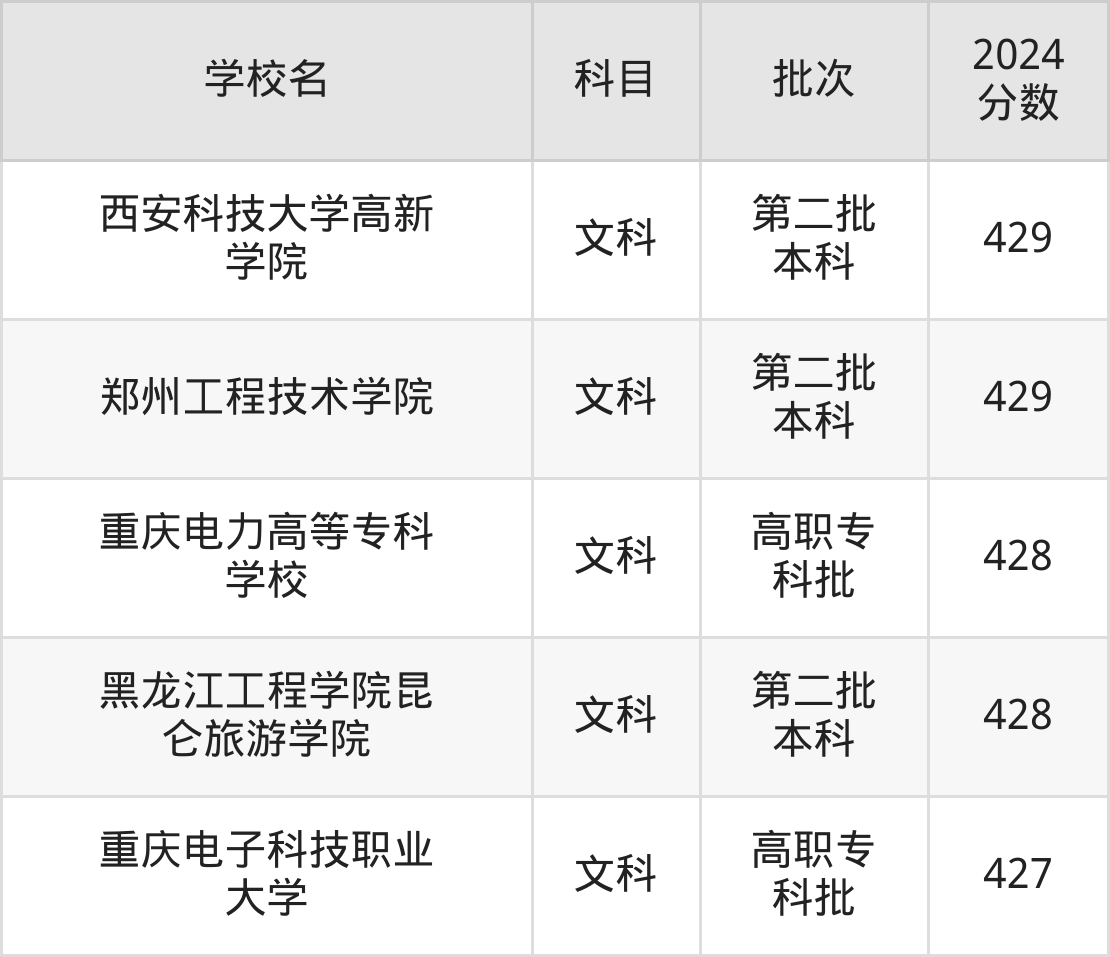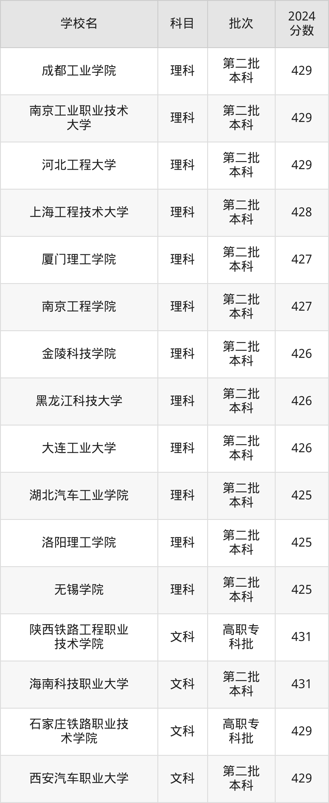 为给各位考生更加详细的参考,下文整理了2024年录取分数线在425分到435分之间的理工类大学名单汇总。