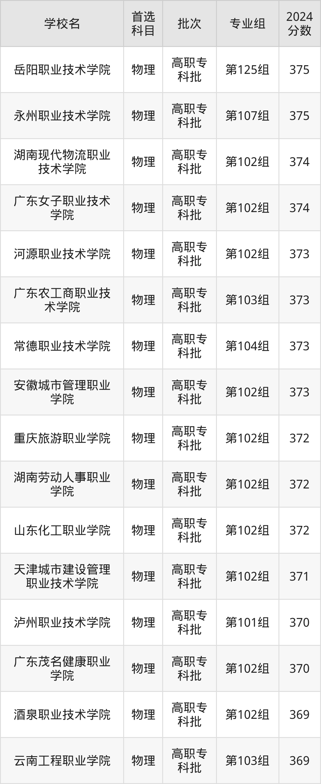 2、广东茂名健康职业学院(2024年物理类第102组370分)