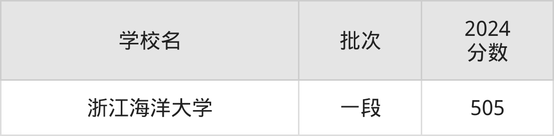 考生能上的有1所,全部在本科批次录取。具体有:浙江海洋大学(505分)。