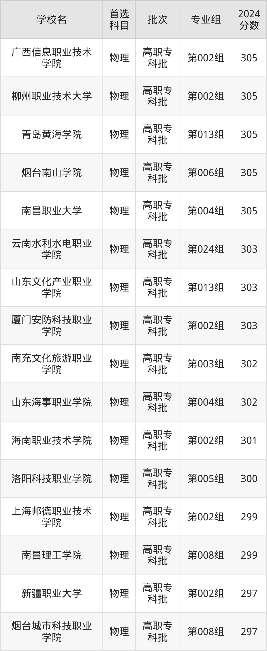 2、洛阳科技职业学院(2024年物理类第005组300分)