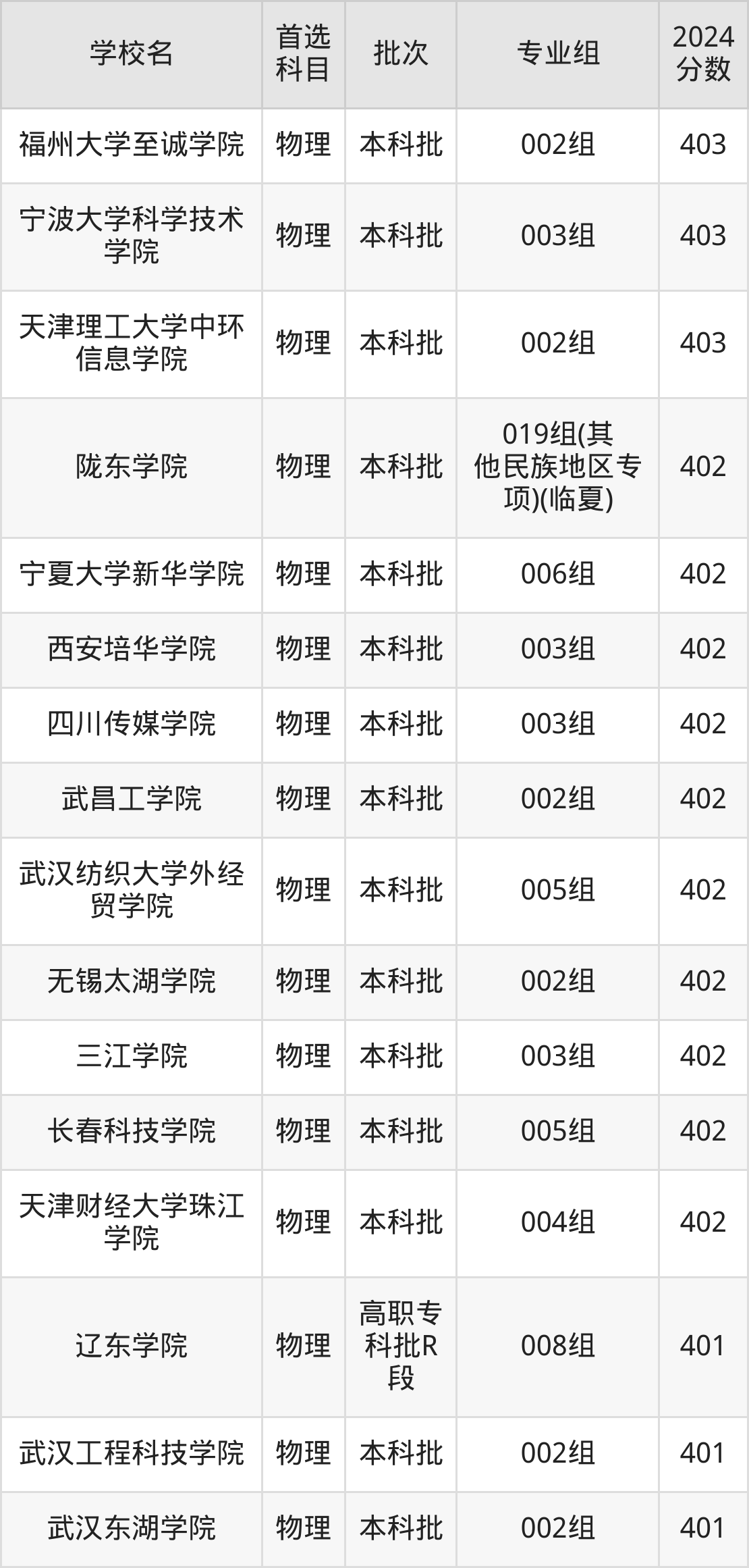 2、宁夏大学新华学院(2024年物理类009组400分)