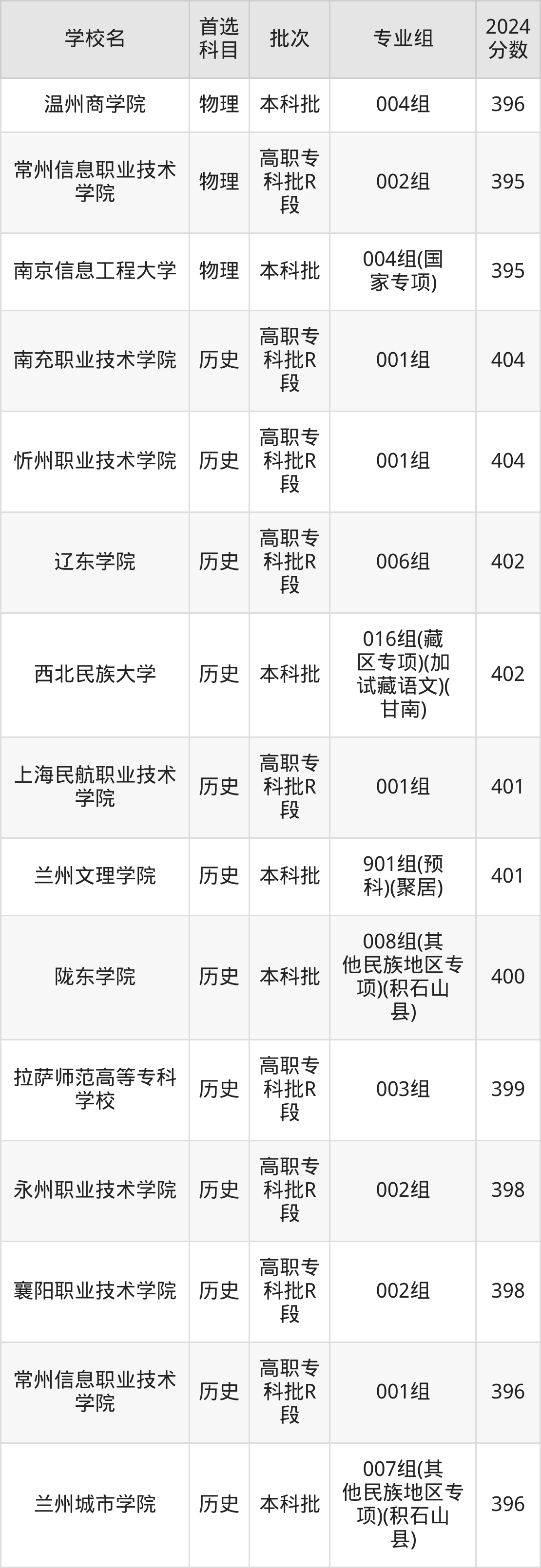 1、陇东学院(2024年历史类008组(其他民族地区专项)(积石山县)400分)