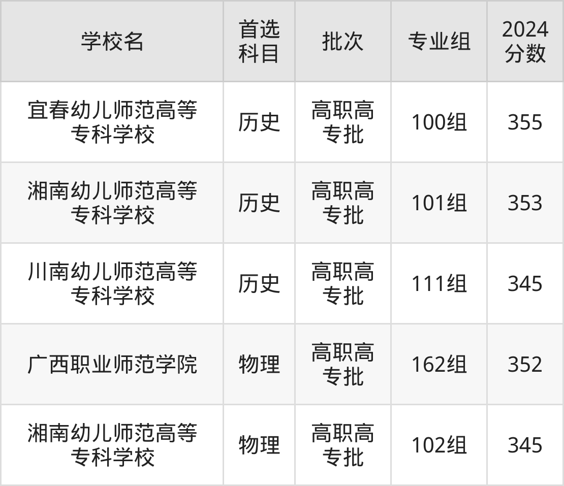 1、湘南幼儿师范高等专科学校(2024年历史类101组353分)