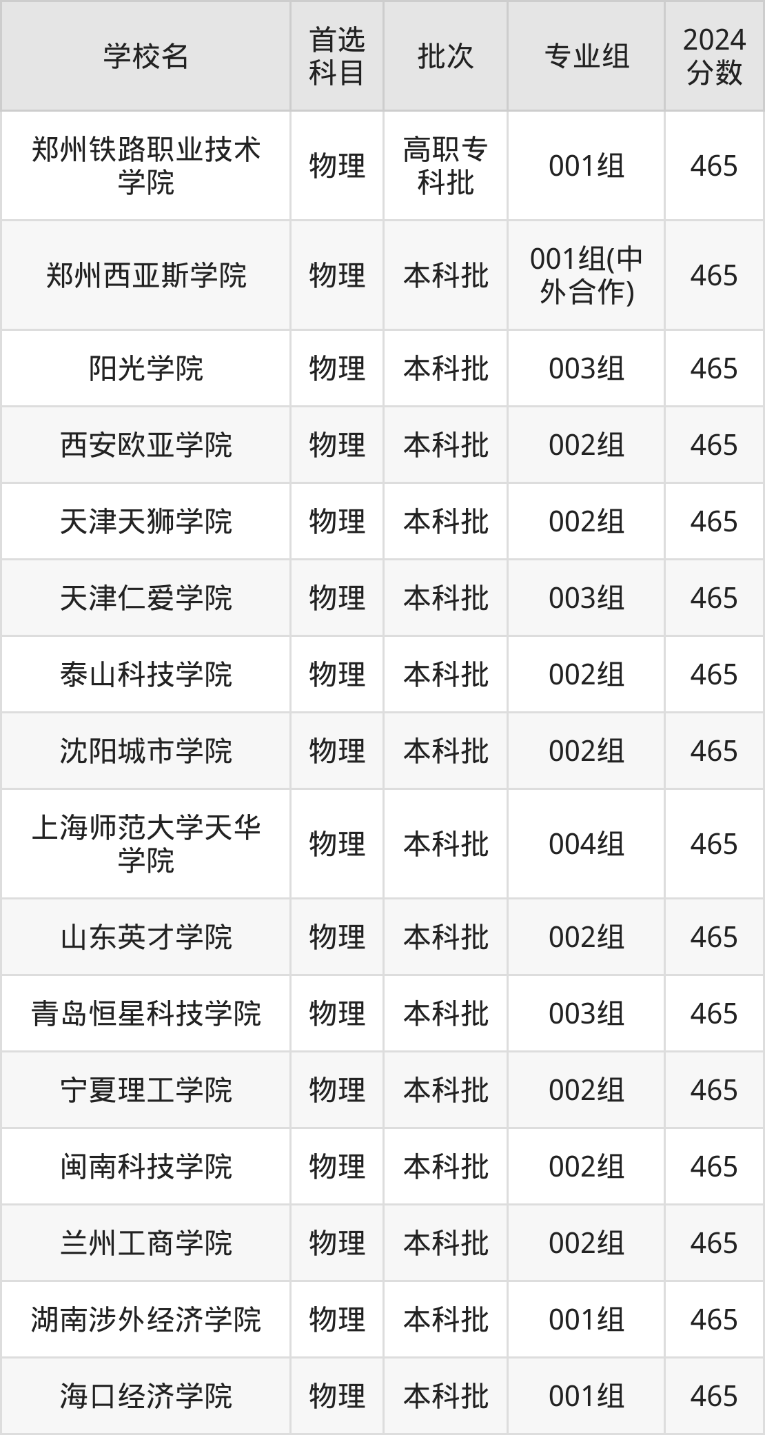 首选物理科目考生能上的有30所,包括23所本科医科大学和7所专科医科大学。具体有:郑州铁路职业技术学院001组(465分)、郑州西亚斯学院001组(中外合作)(465分)、阳光学院003组(465分)、西安欧亚学院002组(465分)等;