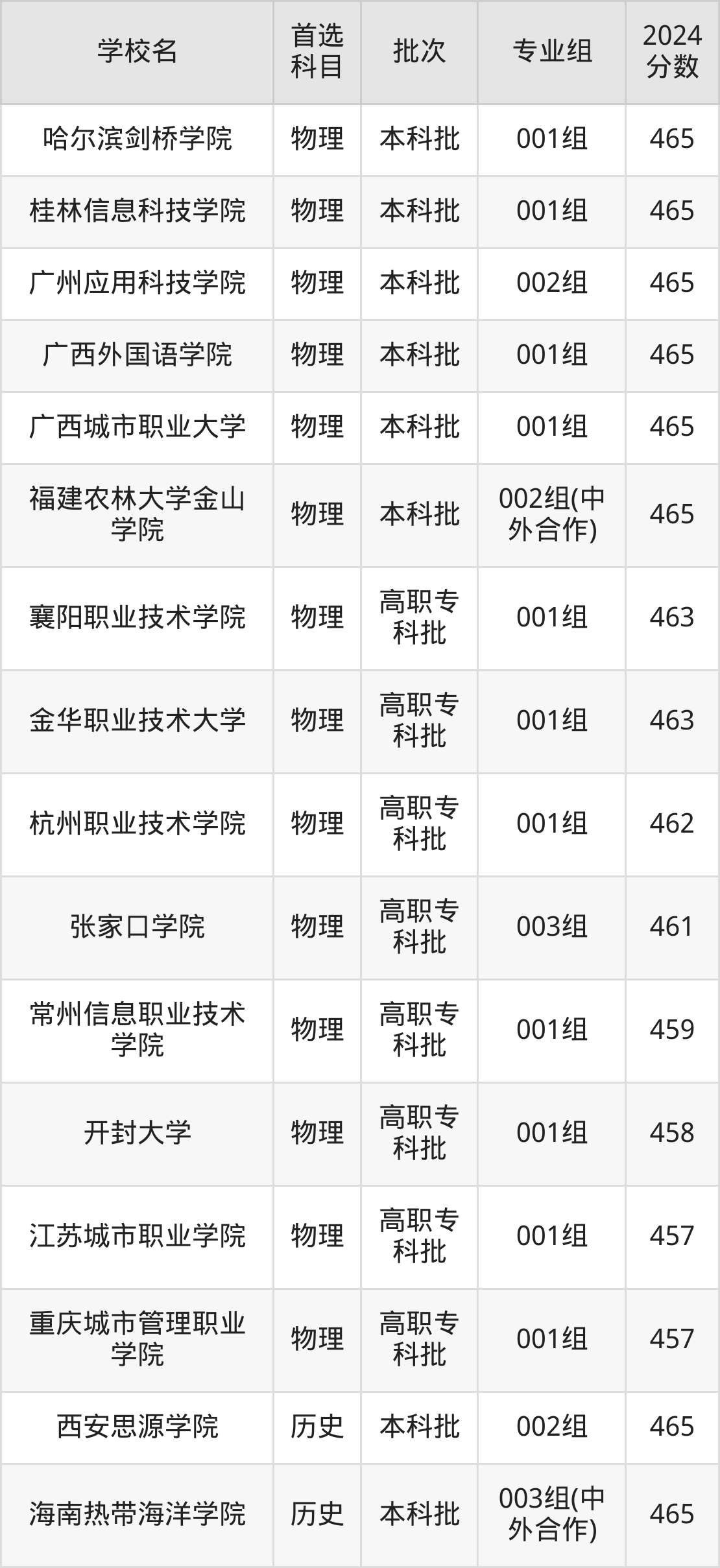 为给各位考生更加详细的参考,下文整理了2024年录取分数线在455分到465分之间的综合类大学名单汇总。