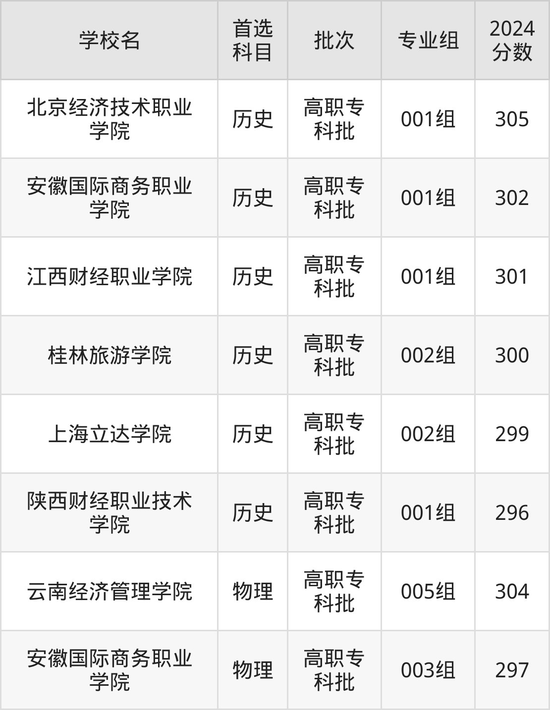 桂林旅游学院(2024年历史类002组300分)