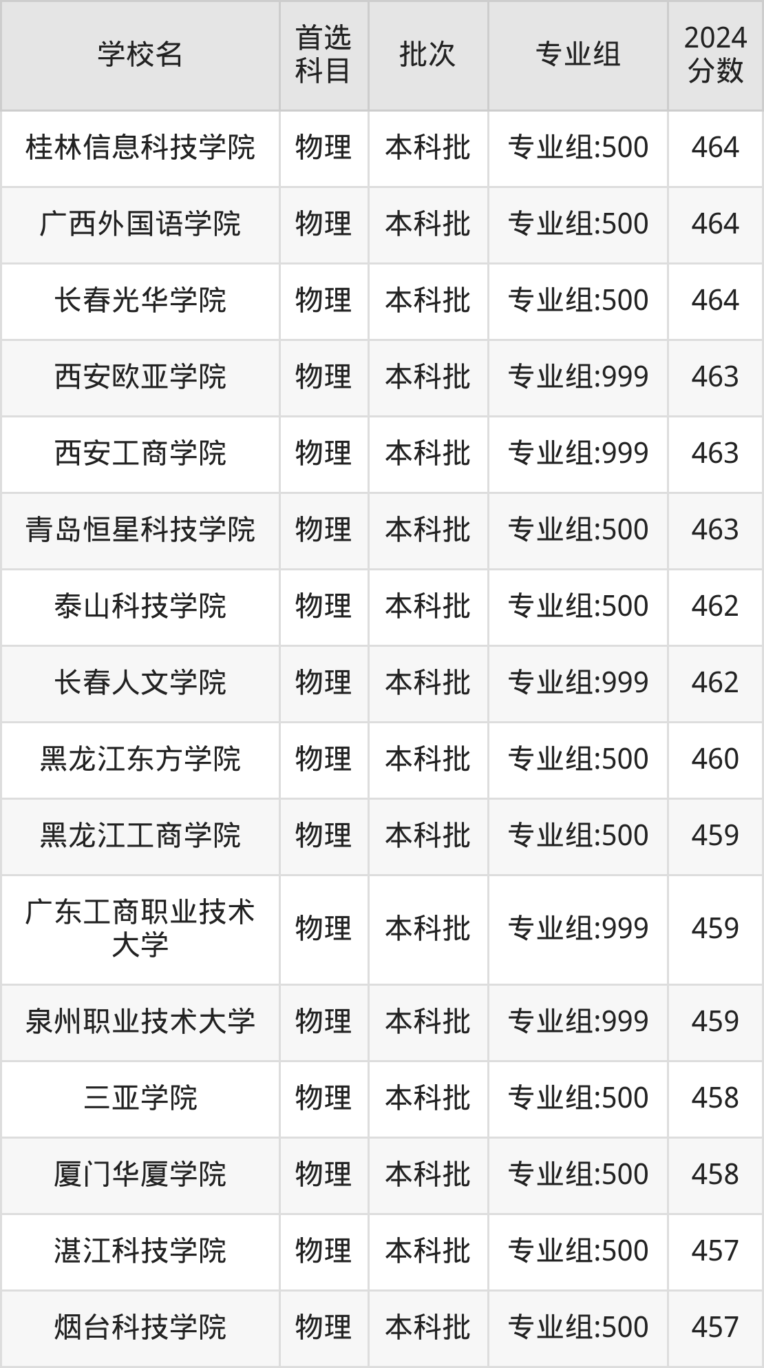 1、黑龙江东方学院(2024年物理类专业组:500460分)