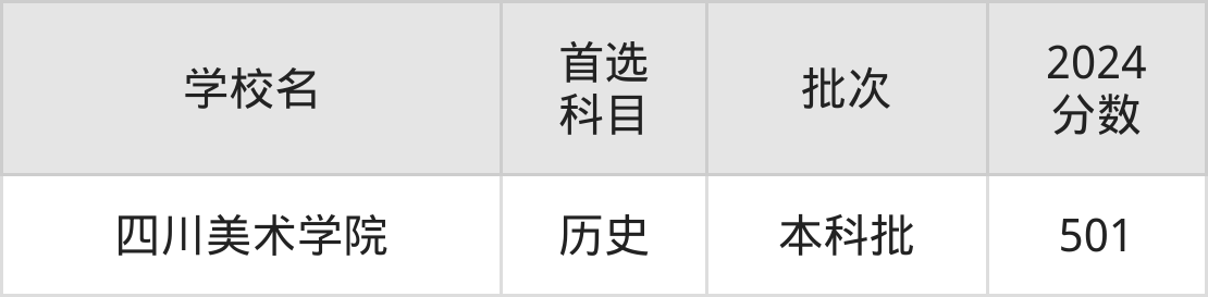 首选历史科目考生能上的有1所,全部在本科批次录取。具体有:四川美术学院(501分)。