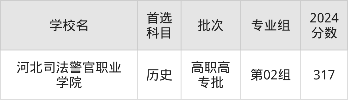3、河北司法警官职业学院(2024年历史类第01组329分)