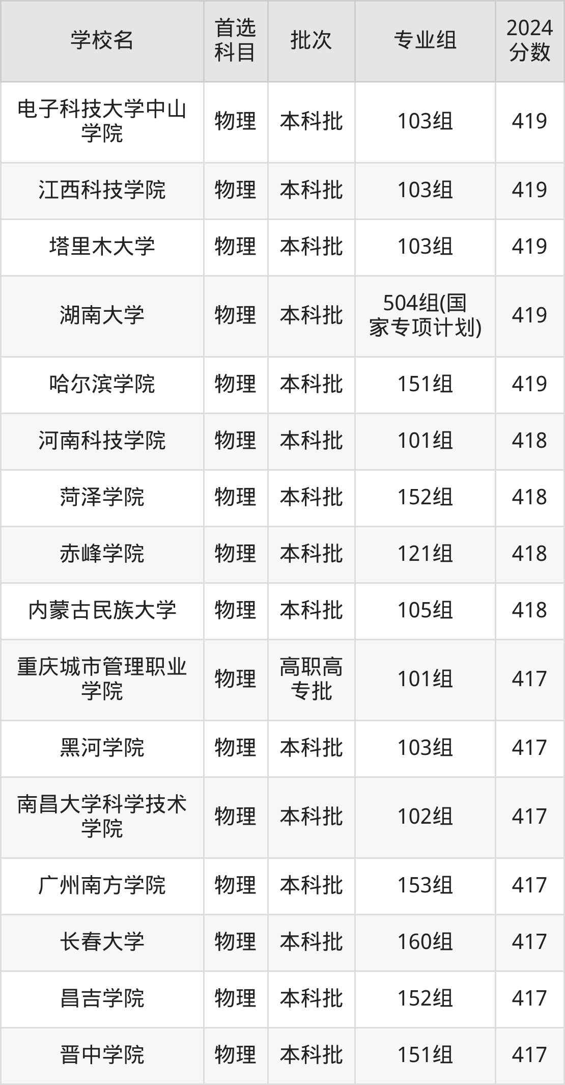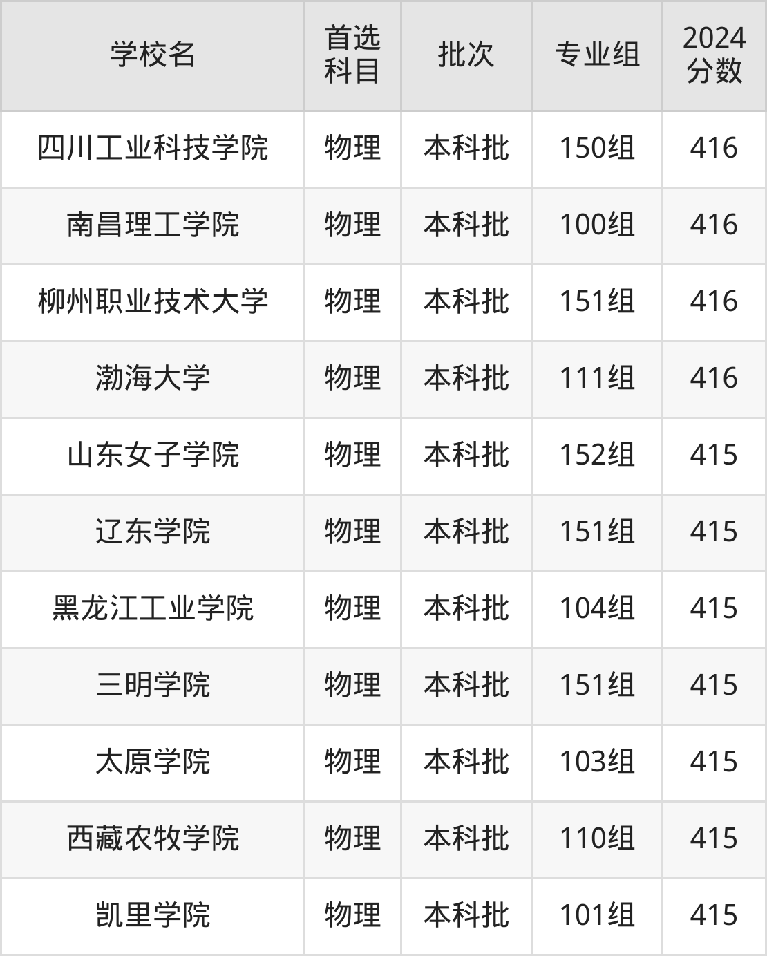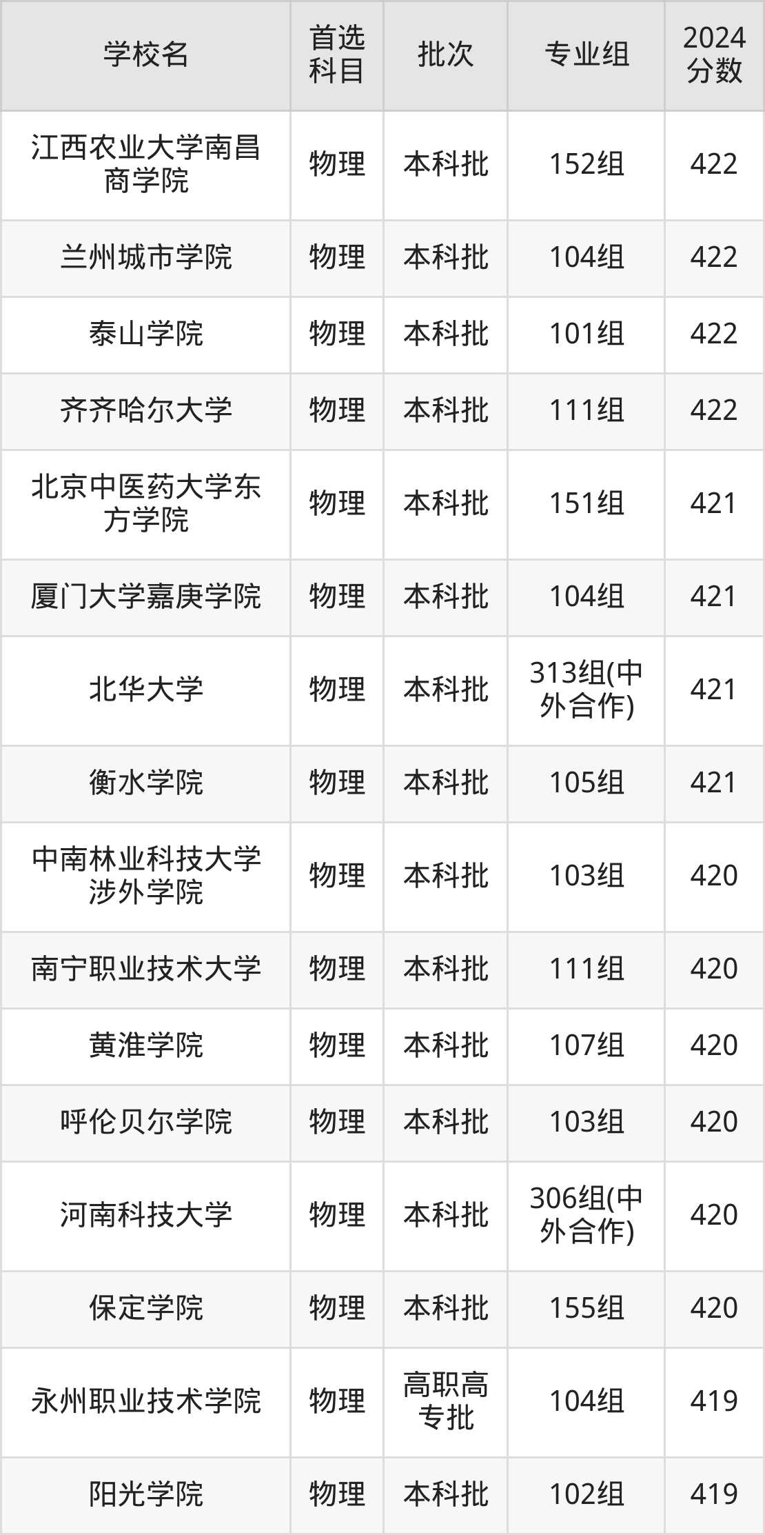 为给各位考生更加详细的参考,下文整理了2024年录取分数线在415分到425分之间的综合类大学名单汇总。