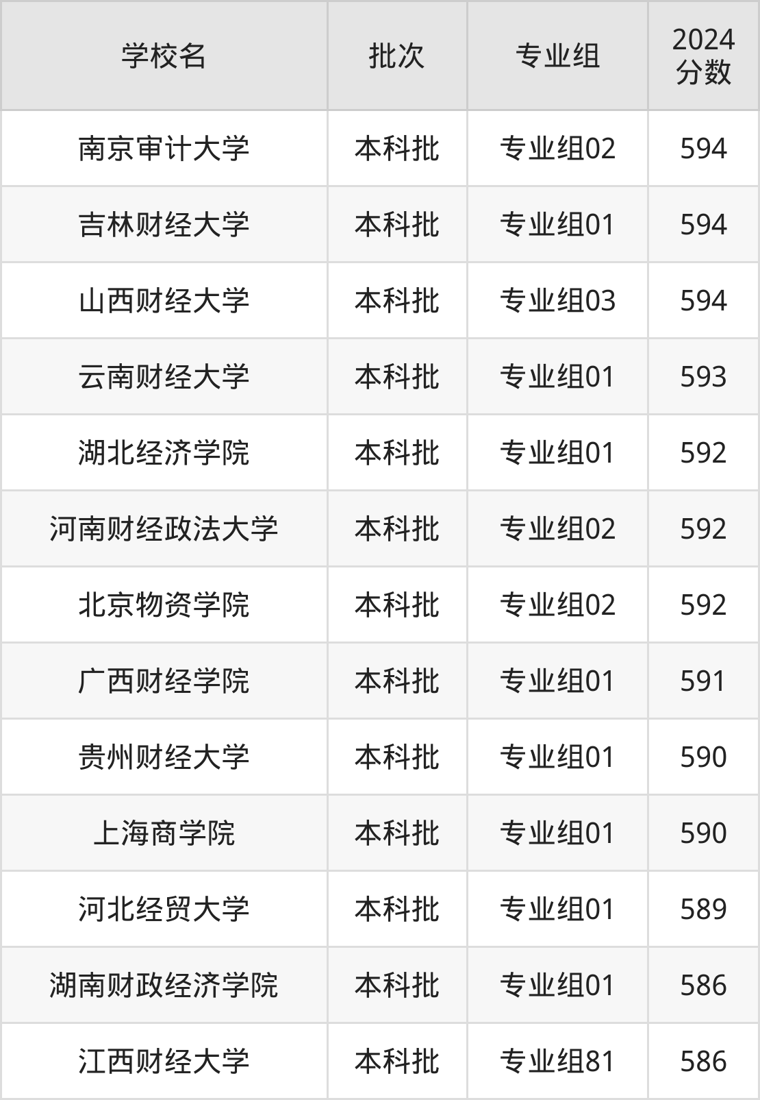 为给各位考生更加详细的参考,下文整理了2024年录取分数线在585分到595分之间的财经类大学名单汇总。