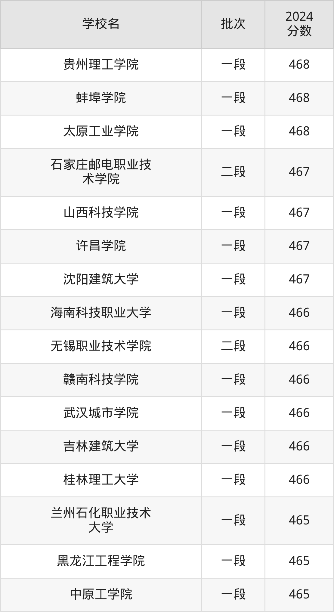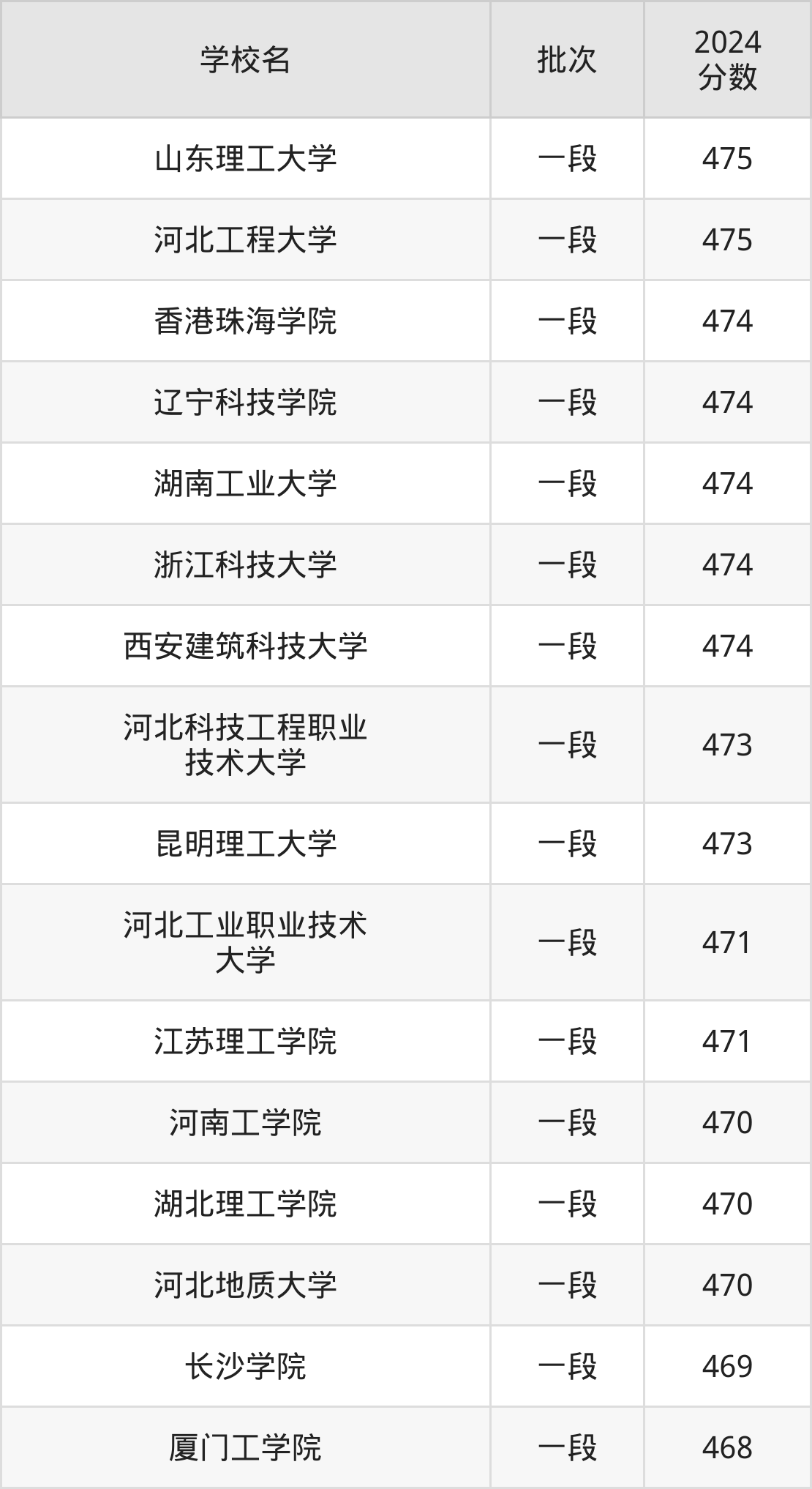 为给各位考生更加详细的参考,下文整理了2024年录取分数线在465分到475分之间的理工类大学名单汇总。