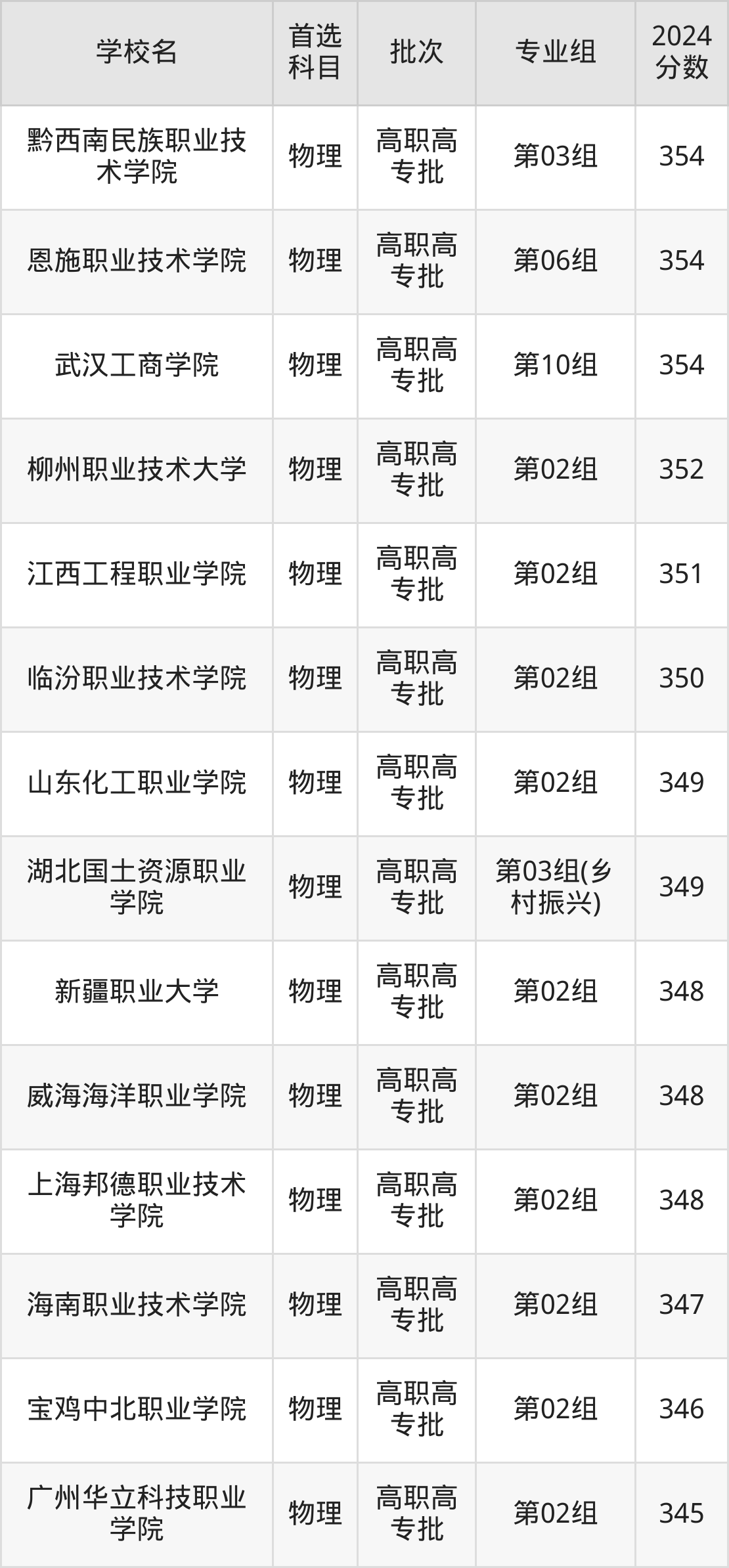 1、黔西南民族职业技术学院(2024年物理类第04组350分)