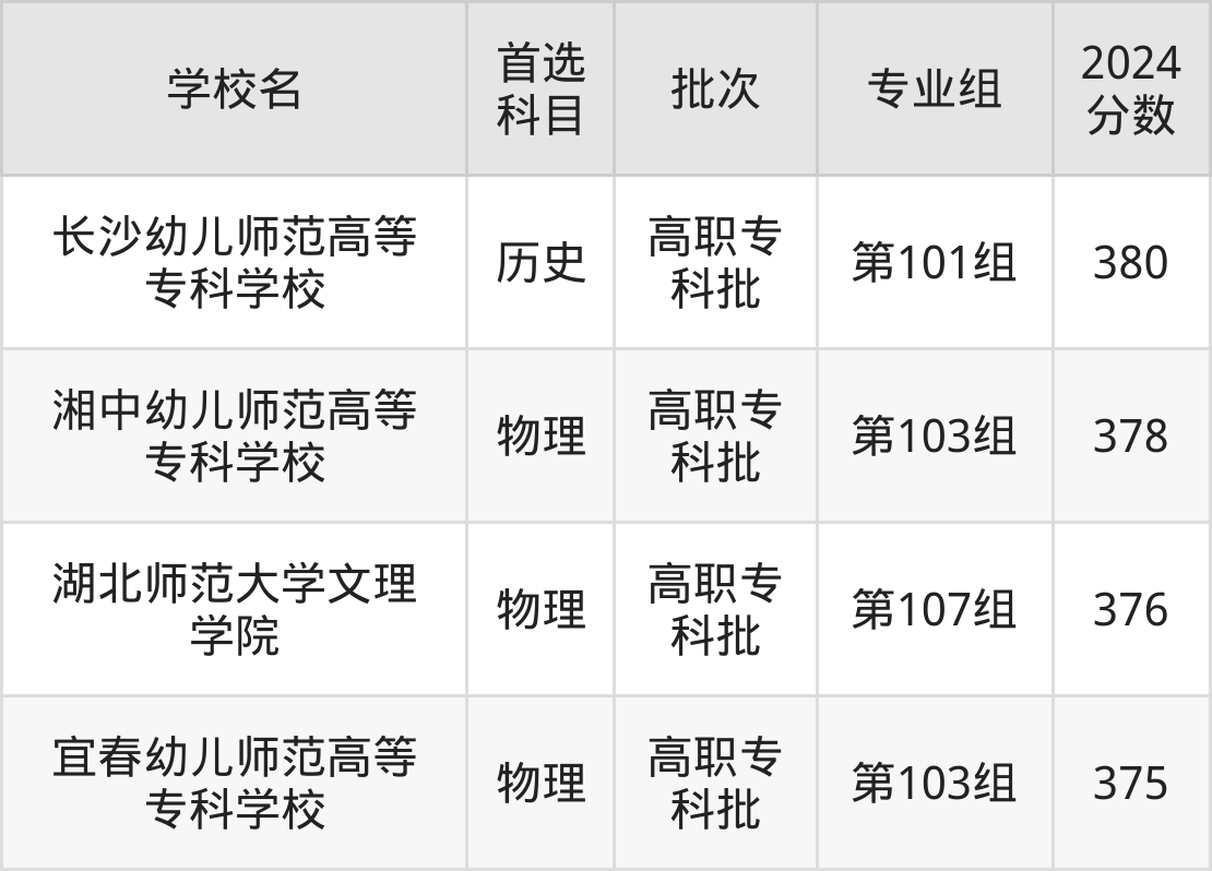 长沙幼儿师范高等专科学校(2024年历史类第101组380分)