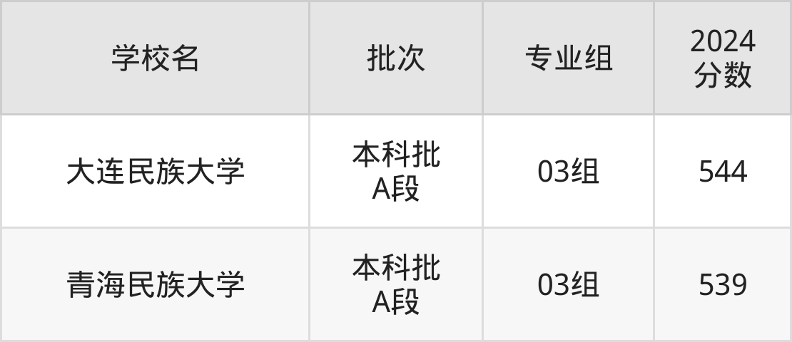 为给各位考生更加详细的参考,下文整理了2024年录取分数线在535分到545分之间的民族类大学名单汇总。