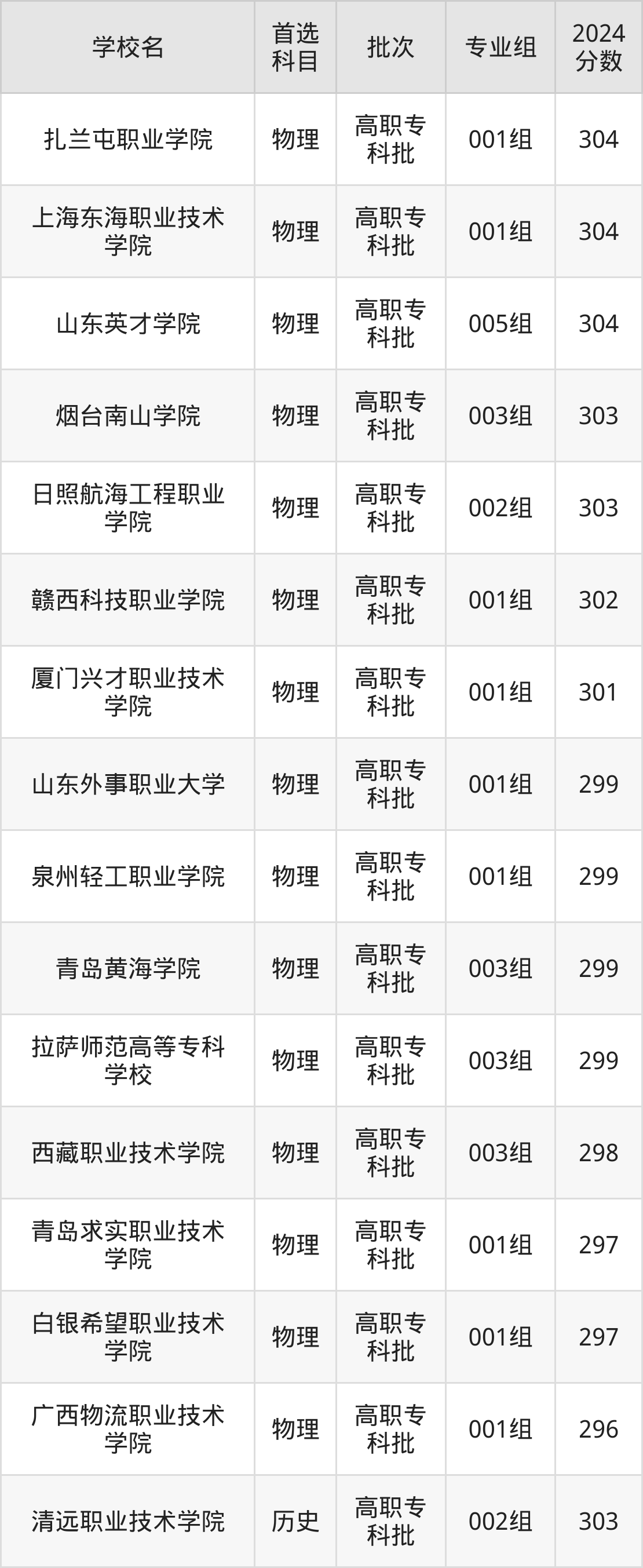 首选物理科目考生能上的有15所,包括4所本科医科大学和11所专科医科大学。具体有:扎兰屯职业学院001组(304分)、上海东海职业技术学院001组(304分)、山东英才学院005组(304分)、烟台南山学院003组(303分)等;