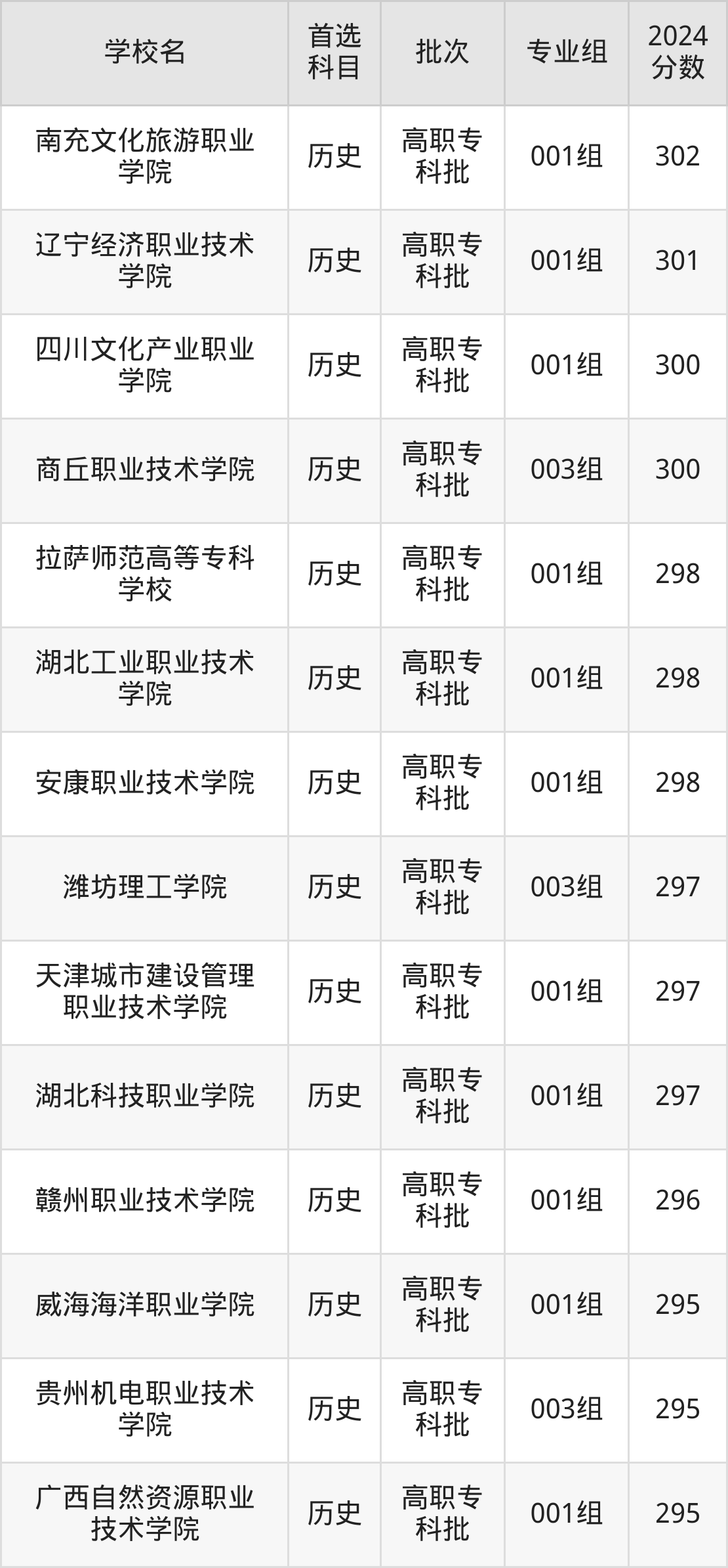 1、四川文化产业职业学院(2024年历史类001组300分)