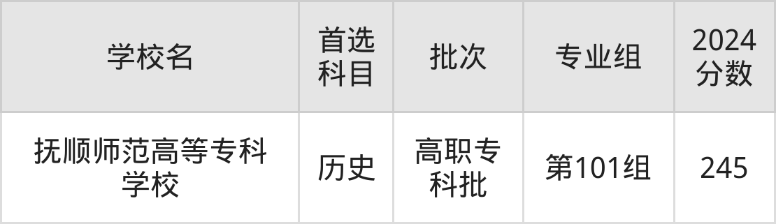 1、抚顺师范高等专科学校(2024年历史类第101组245分)