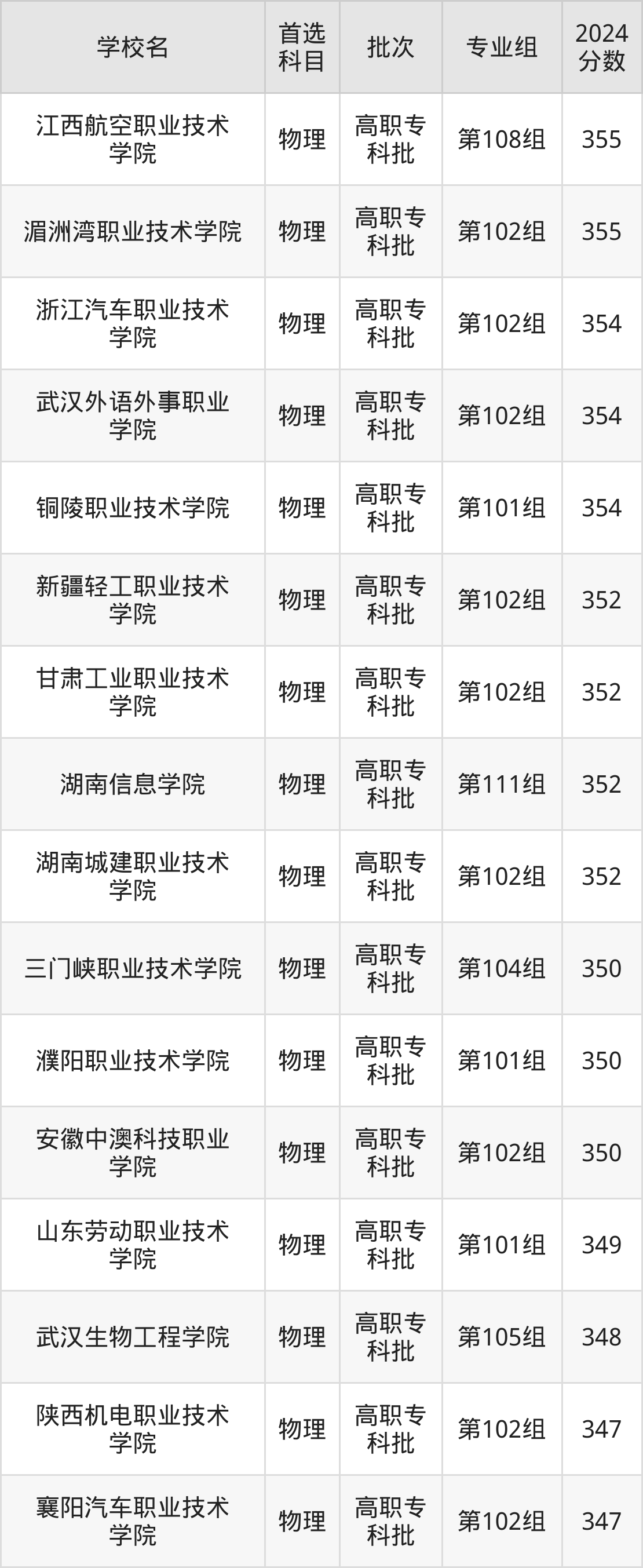2、濮阳职业技术学院(2024年物理类第101组350分)
