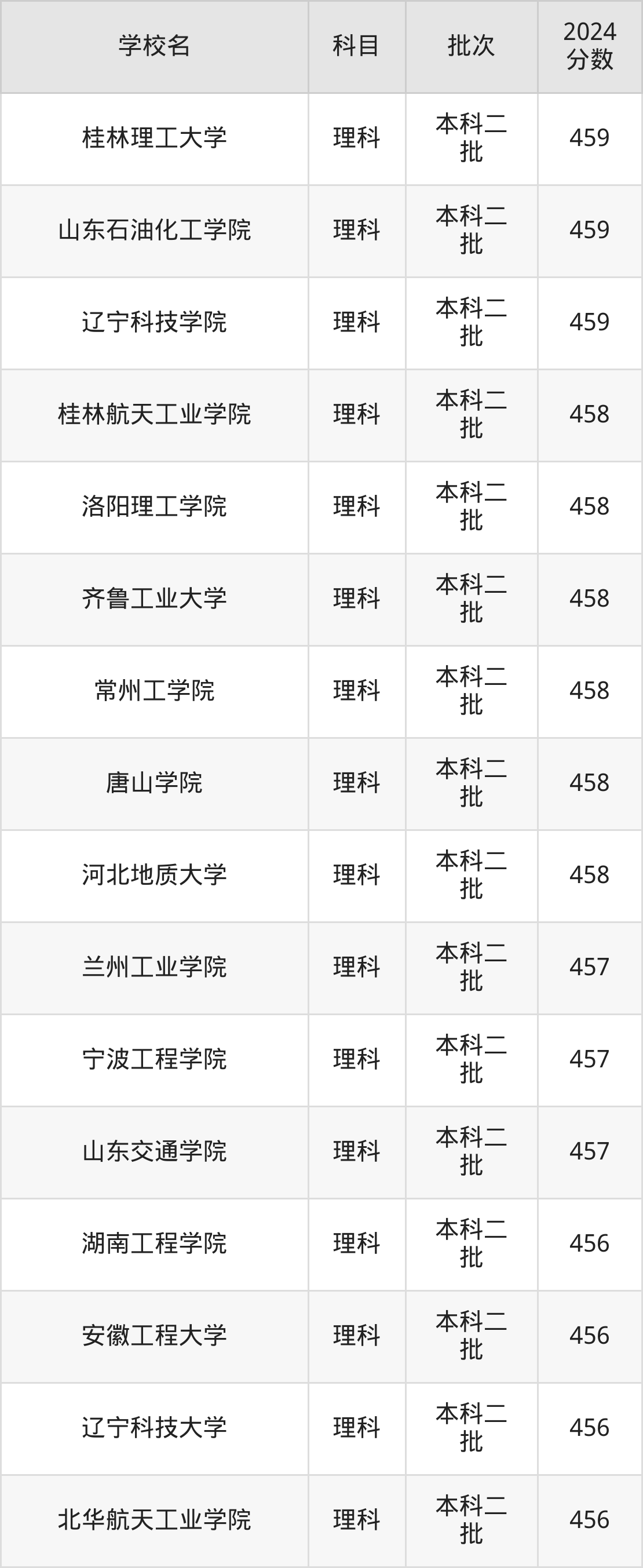 为给各位考生更加详细的参考,下文整理了2024年录取分数线在455分到465分之间的理工类大学名单汇总。