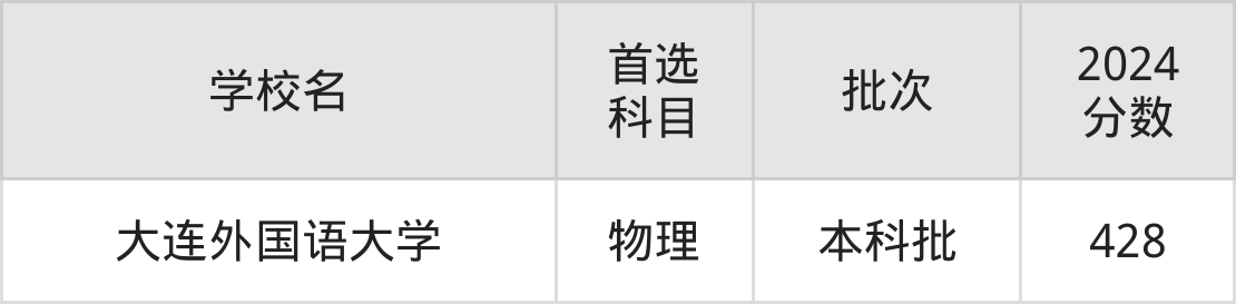 1、大连外国语大学(2024年物理类428分)