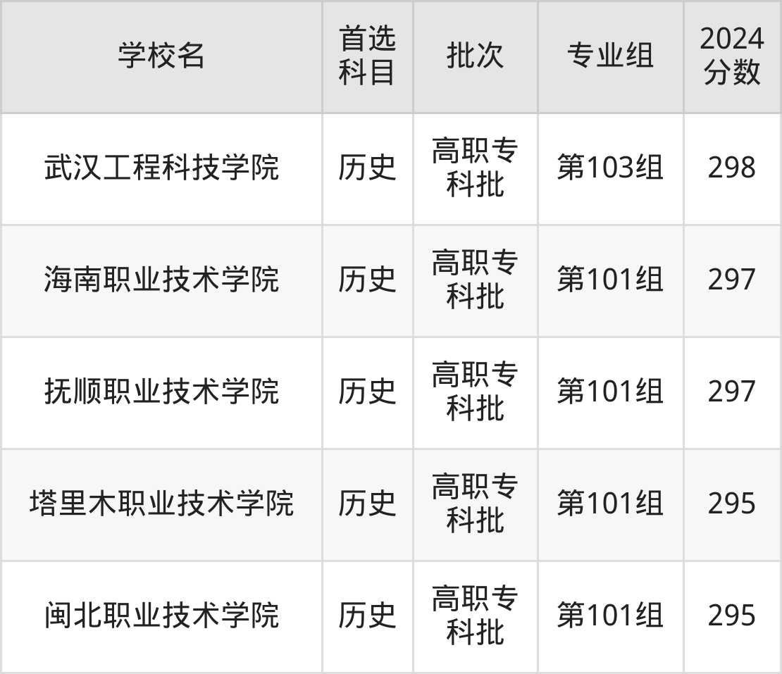 1、酒泉职业技术学院(2024年历史类第101组300分)