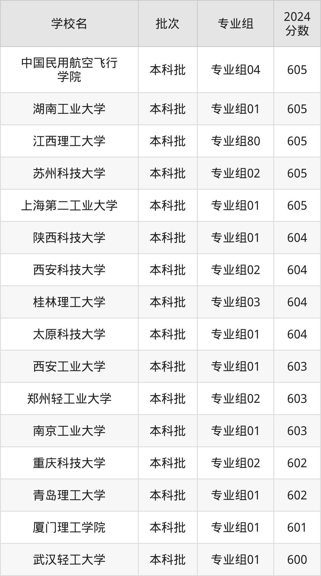 考生能上的有33所,全部在本科批次录取。具体有:中国民用航空飞行学院专业组04(605分)、湖南工业大学专业组01(605分)、江西理工大学专业组80(605分)、苏州科技大学专业组02(605分)等。