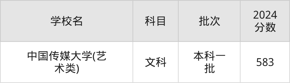 1、中国传媒大学(艺术类)(2024年文科583分)