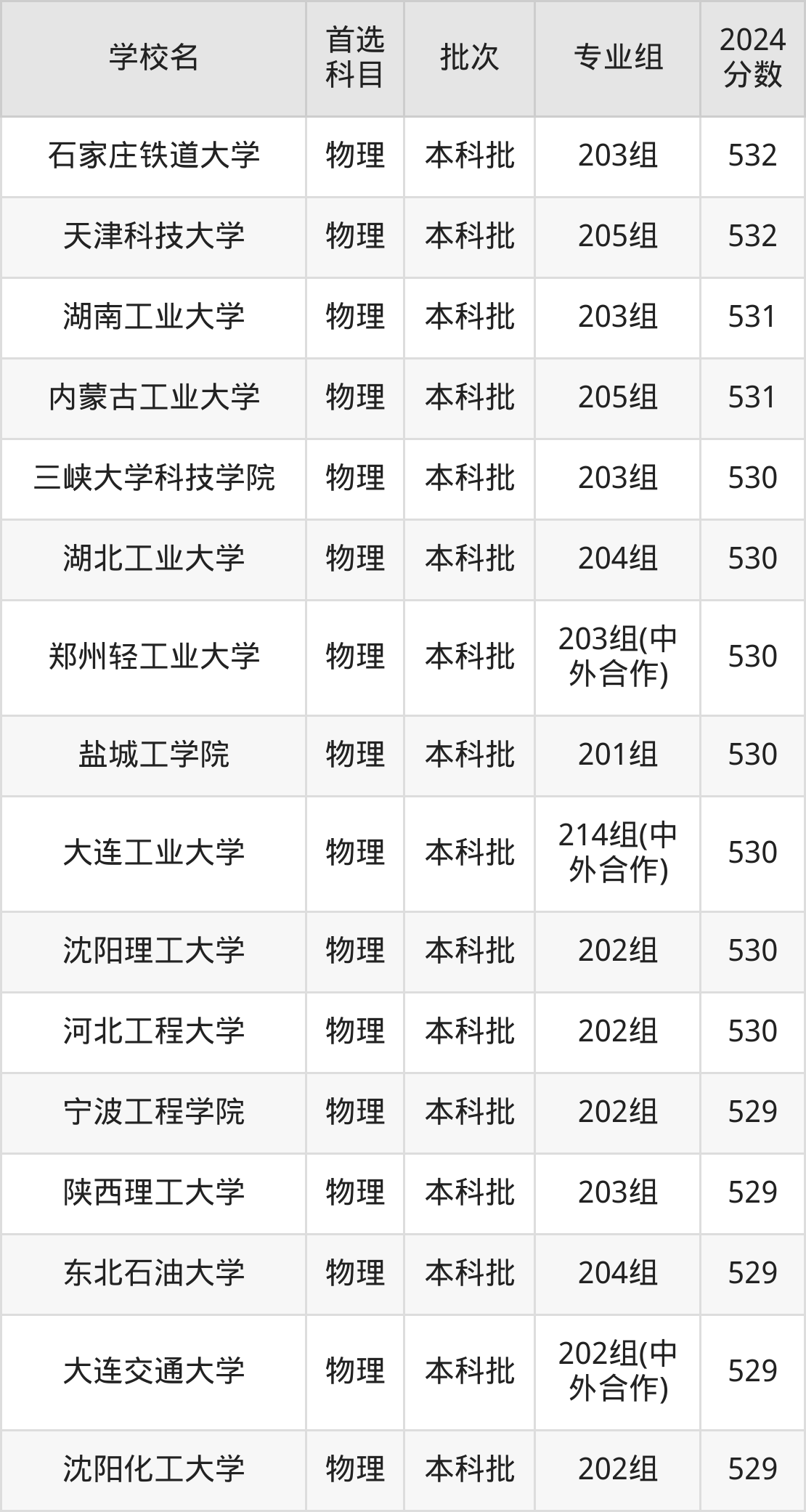 为给各位考生更加详细的参考,下文整理了2024年录取分数线在525分到535分之间的理工类大学名单汇总。