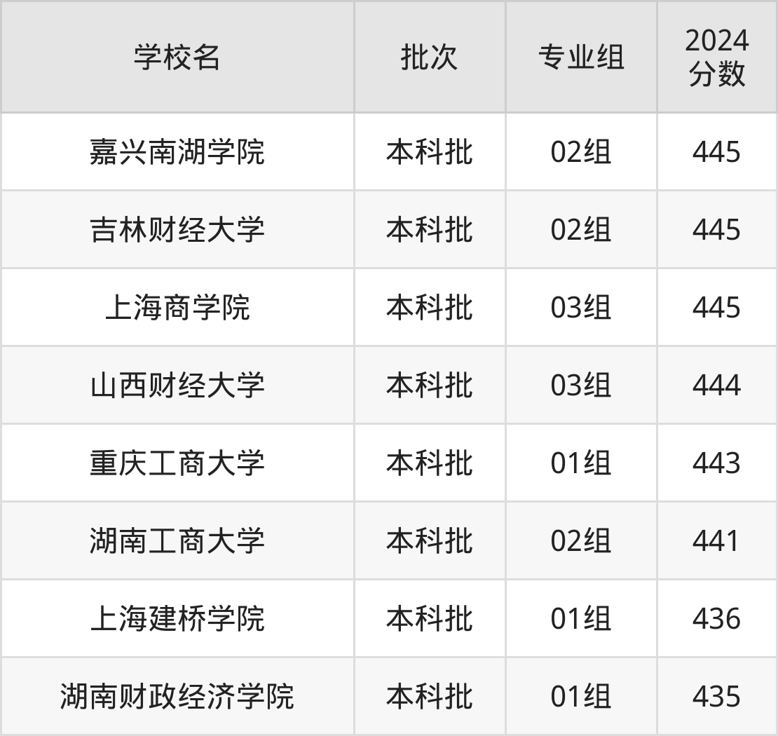 为给各位考生更加详细的参考,下文整理了2024年录取分数线在435分到445分之间的财经类大学名单汇总。