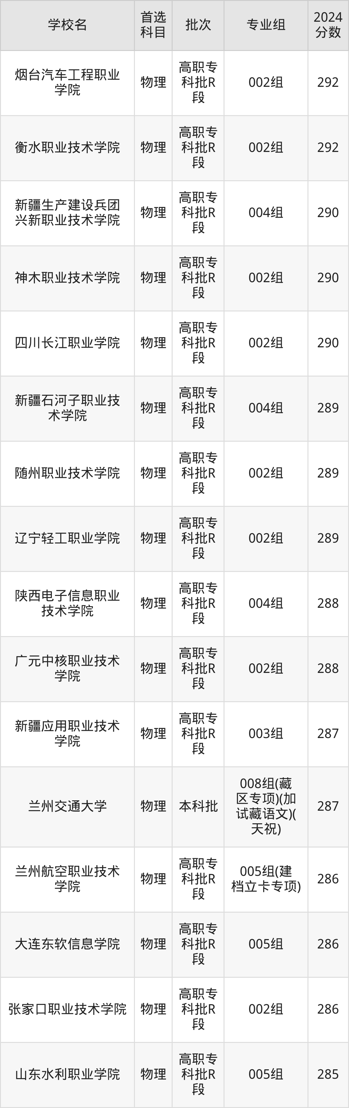 1、新疆生产建设兵团兴新职业技术学院(2024年物理类004组290分)