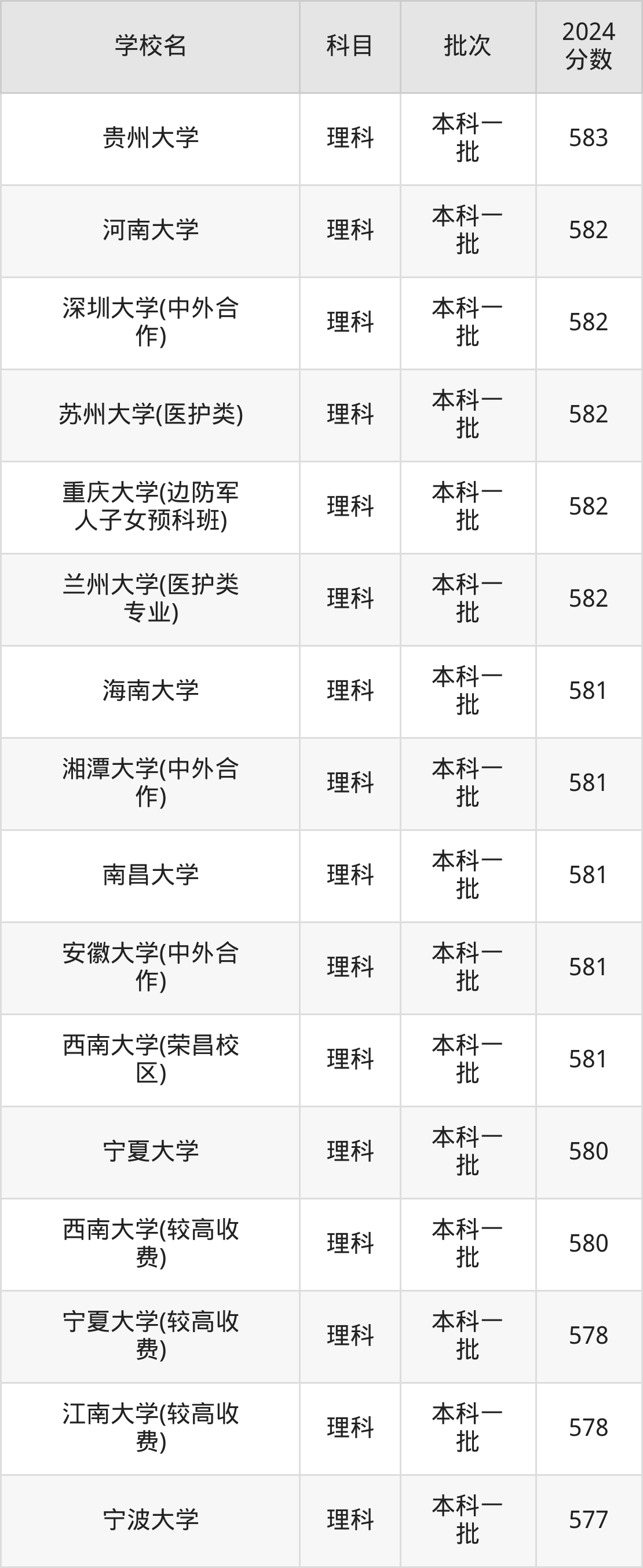 1、宁夏大学(2024年理科580分)